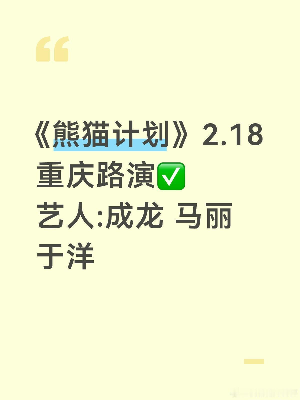 《熊猫计划》2.18重庆路演✅艺人:成龙 马丽 于洋