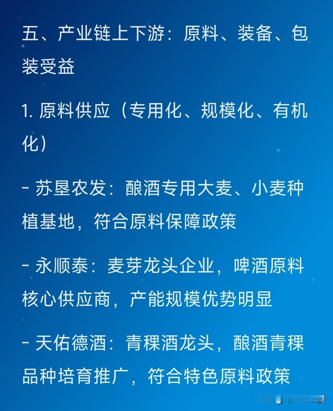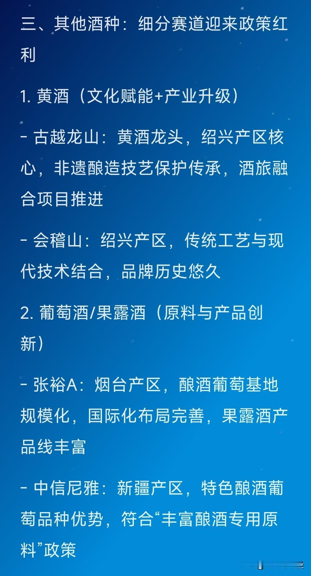 节假日最大利好来袭,酿酒板块节后开门红板上钉钉! 据“人民财讯”2月14日电,“酿酒产业”获取重大利好,相关受益个股深度梳理如下。 关注“刘姥姥”,精彩分享真不少(麻烦亲们:点赞,收藏,分享)。 特别提醒:本文涉及内容及个股,仅供交流与参考,不是荐股,不得以此作为买卖依据,盈亏自负。