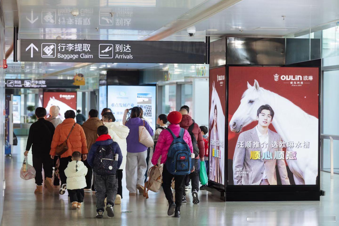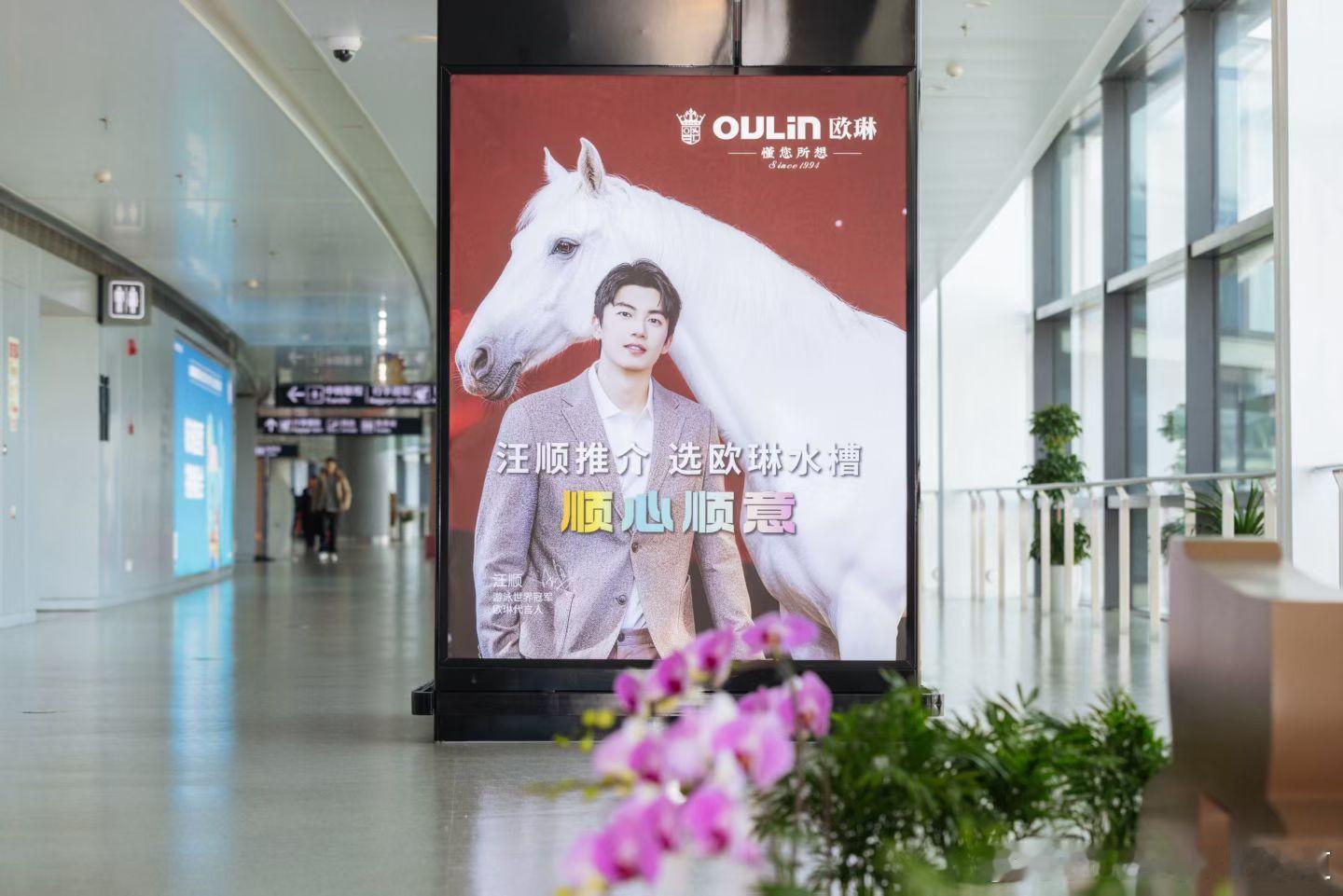 汪顺欧琳新春机场大屏上线贺新春,祝2026马到成功🐎欧琳品牌代言人汪顺汪顺的2
