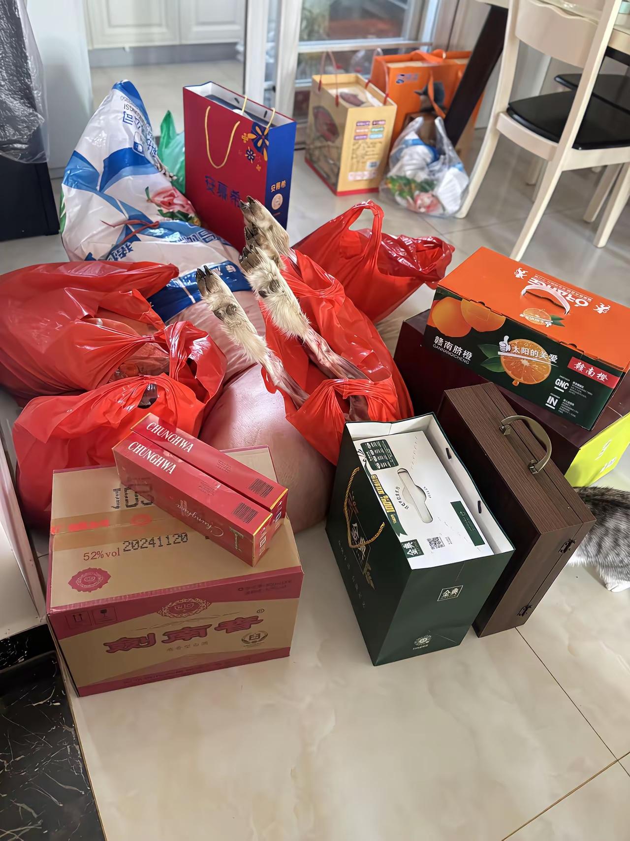 去丈母娘家里,那肯定少不了送礼物的。就是为了这个送礼的问题,还和老婆琢磨了好几天。 今天总算列好清单,采购买回来了。有白酒、有茶叶、有橙子、有牛奶、有羊腿、有面,这些七七不八加起来,应该算可以了吧。