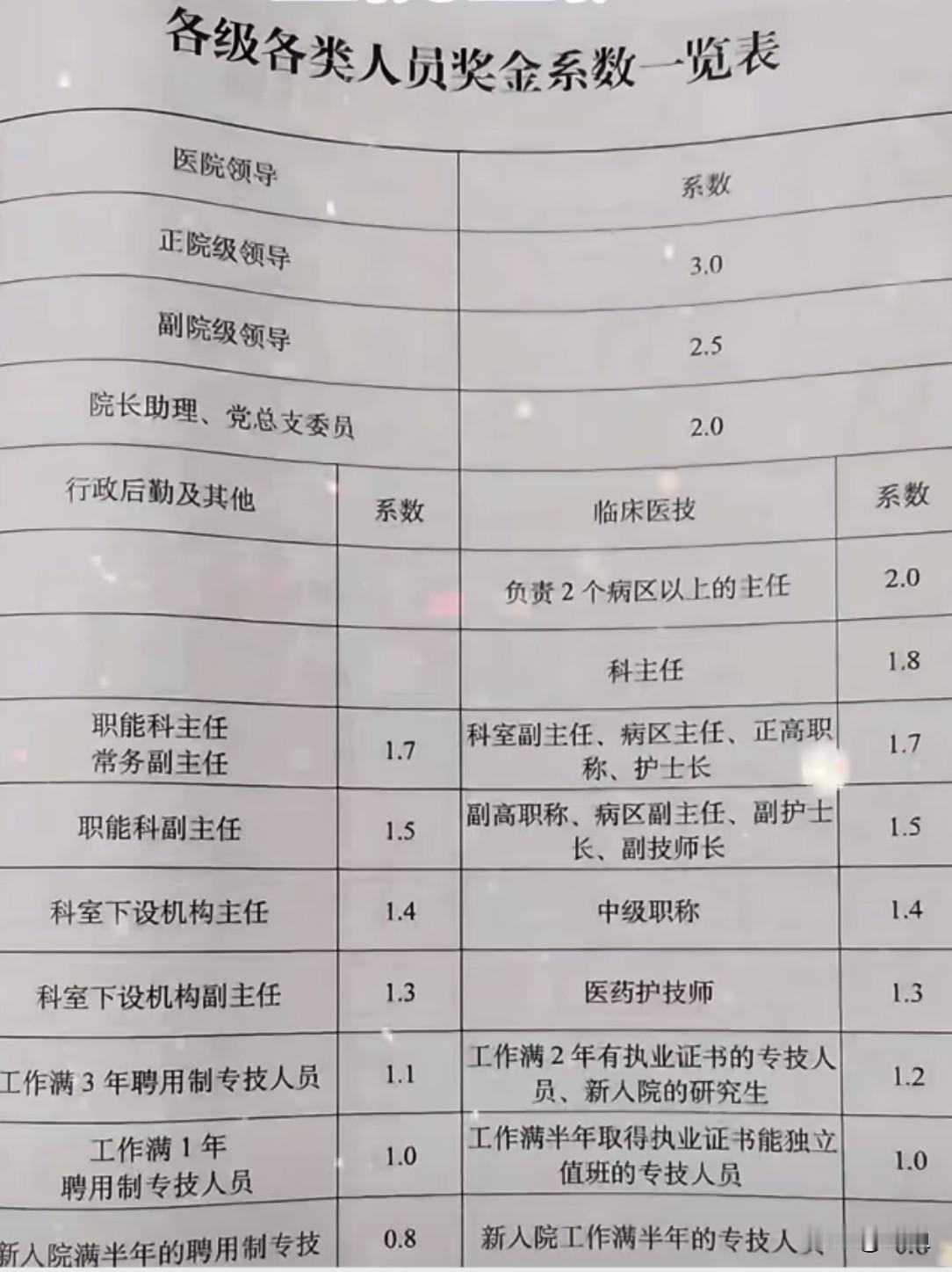 那个所谓的绩效系数3.0和0.8,简直就是把人分了三六九等。 咱们这一线住院医,看着是医生,其实就是个挂名的“高级杂役”。你想想,拿8000块钱得干多少活?销售是你,搞科研是你,安抚家属搞售后还是你。 只要出了事,你是第一个背锅的。 白天看病写病历,晚上还得通宵值大夜。哪怕你累得跟狗一样,后勤那些大爷们还能随便找个理由扣你绩效,你连个屁都不敢放。 最讽刺的是,拿着3.0的那帮人天天开会让你学“奉献精神”,让你吃苦耐劳。 合着咱们拿0.8的命,就是为了给那3.0的业绩填坑的?这世道,老实干活的永远干不过坐办公室喝茶的,真挺没劲。