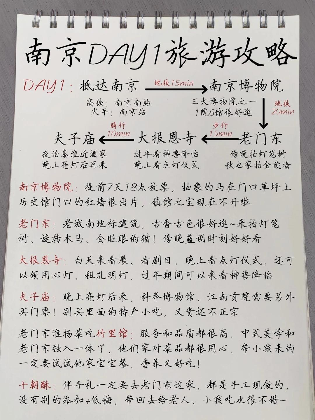 愿打算来南京的姐妹们都能刷到呀‼认真看完,相信能让你畅游南京的💕 - 南京3天2夜旅游攻略 DAY1:南京博物院-老门东-大报恩寺-夫子庙 沿线吃:竹里馆、十朝酥 DAY2:遇难同胞纪念馆-总统府-颐和路-先锋书店 沿线吃:枣玛露脊骨土豆汤、觅炙烧烤现炒海鲜粥火锅、泥炉烧肉师 DAY3:明孝陵-梧桐大道-音乐台-中山陵 沿线吃:小厨娘淮扬菜 .
