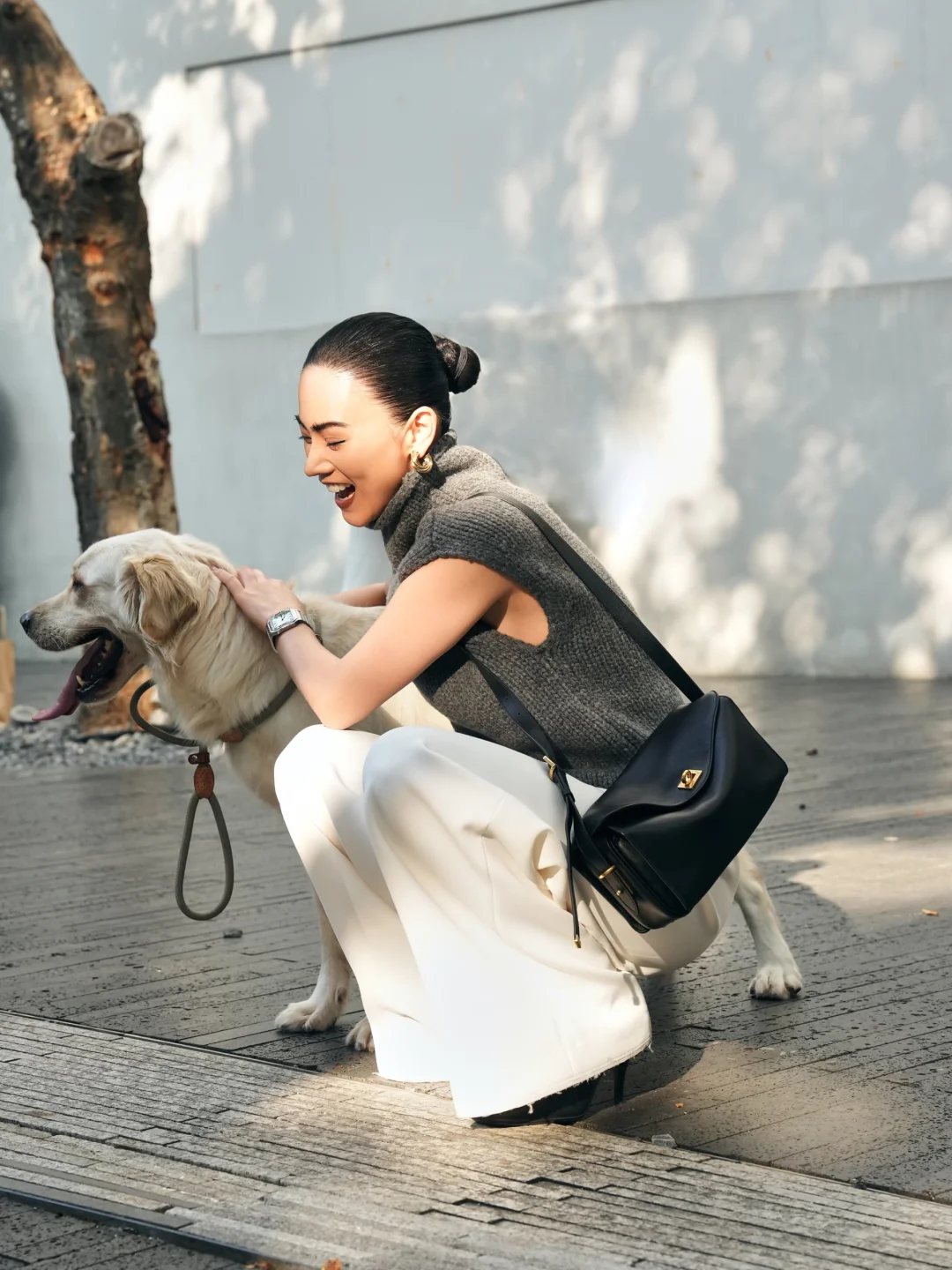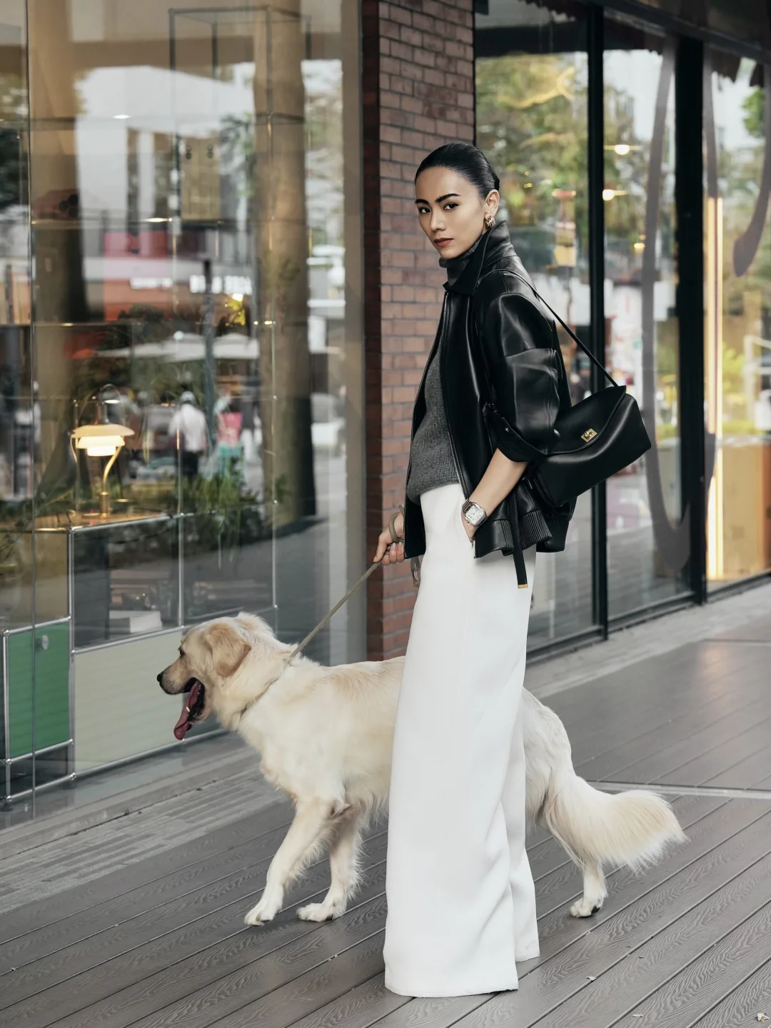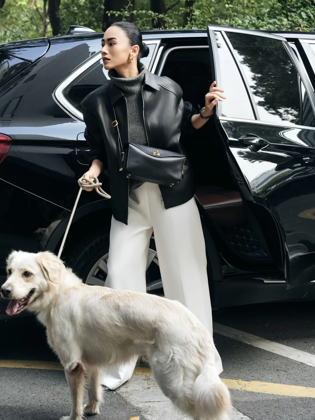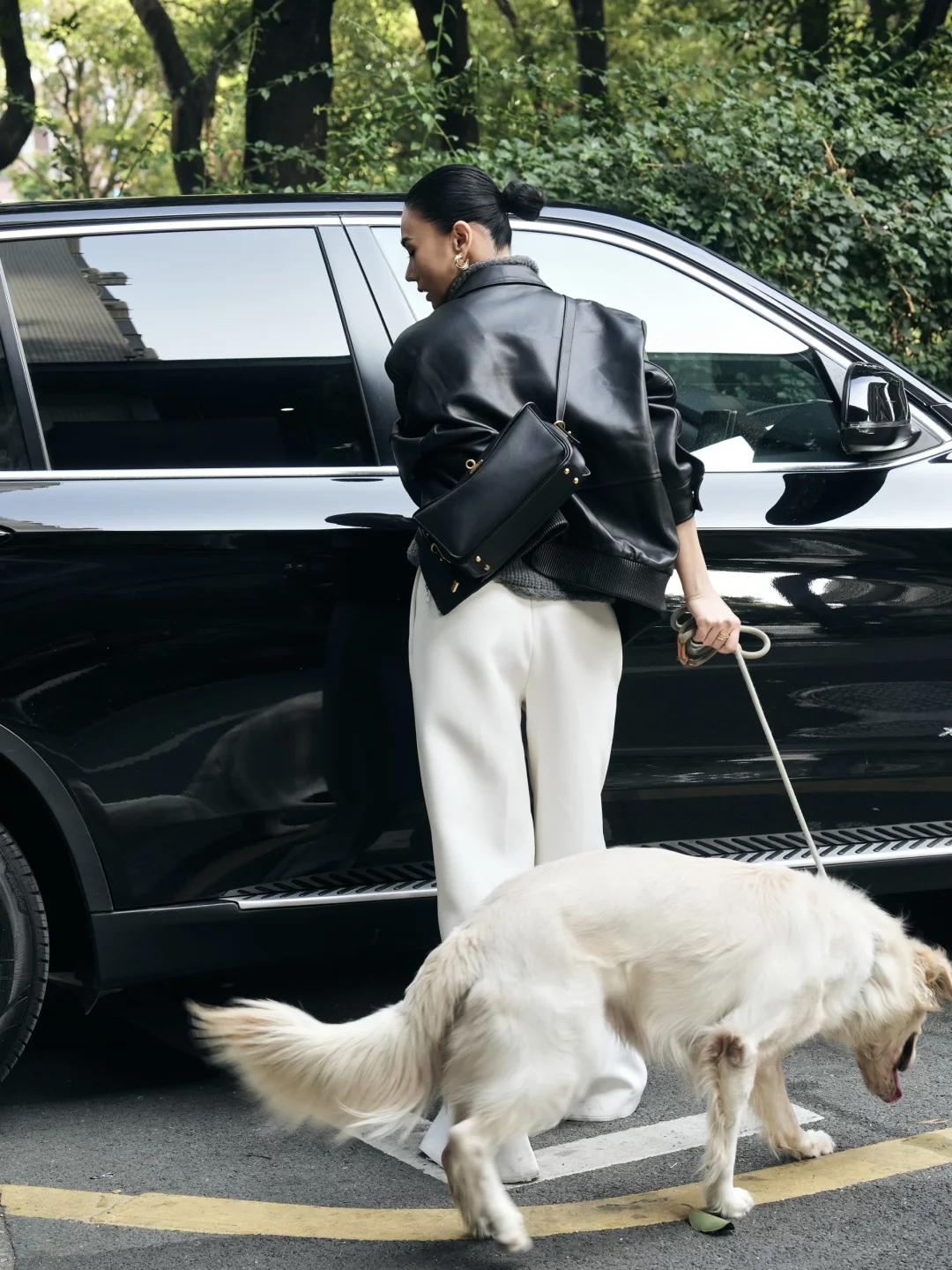 上周7号,皮衣、白裤和狗狗