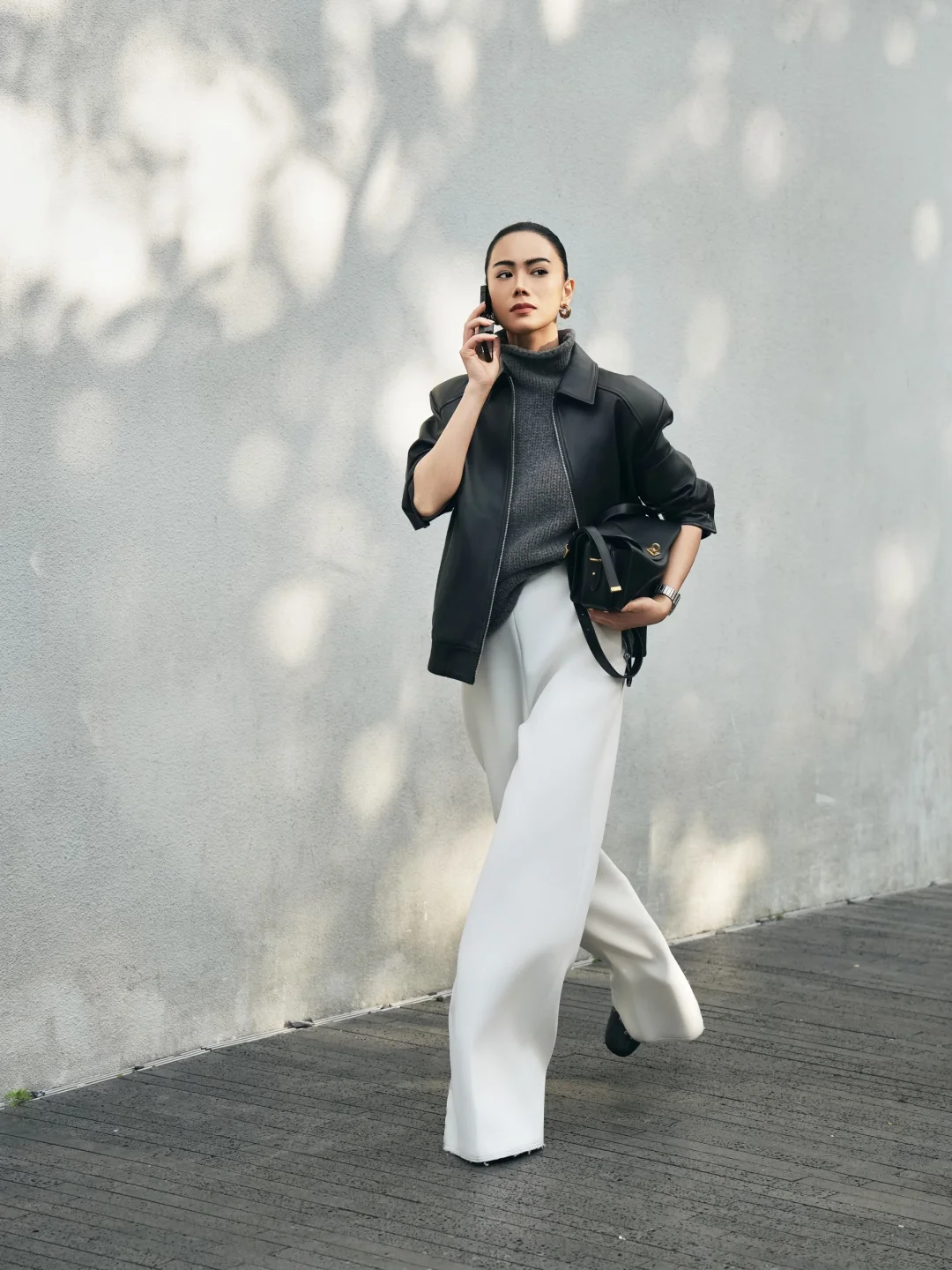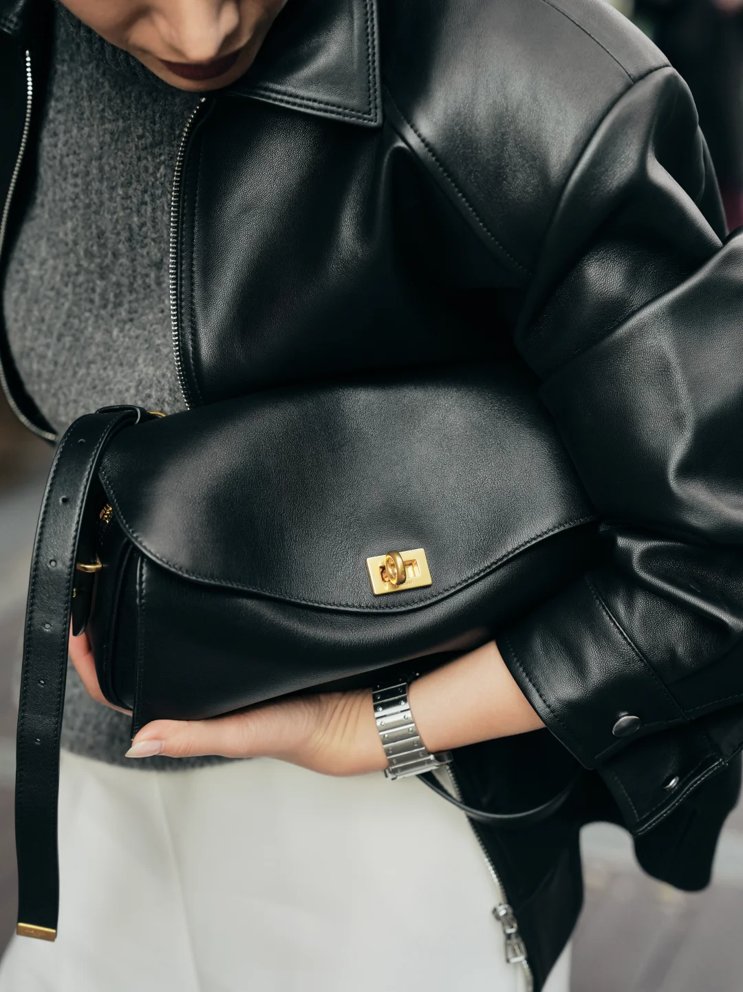 套上那件穿过第二个冬天的皮衣,肩上那只Le7 软得像第二层皮肤一样, 不费力大概就是成年人的顶级松弛了。