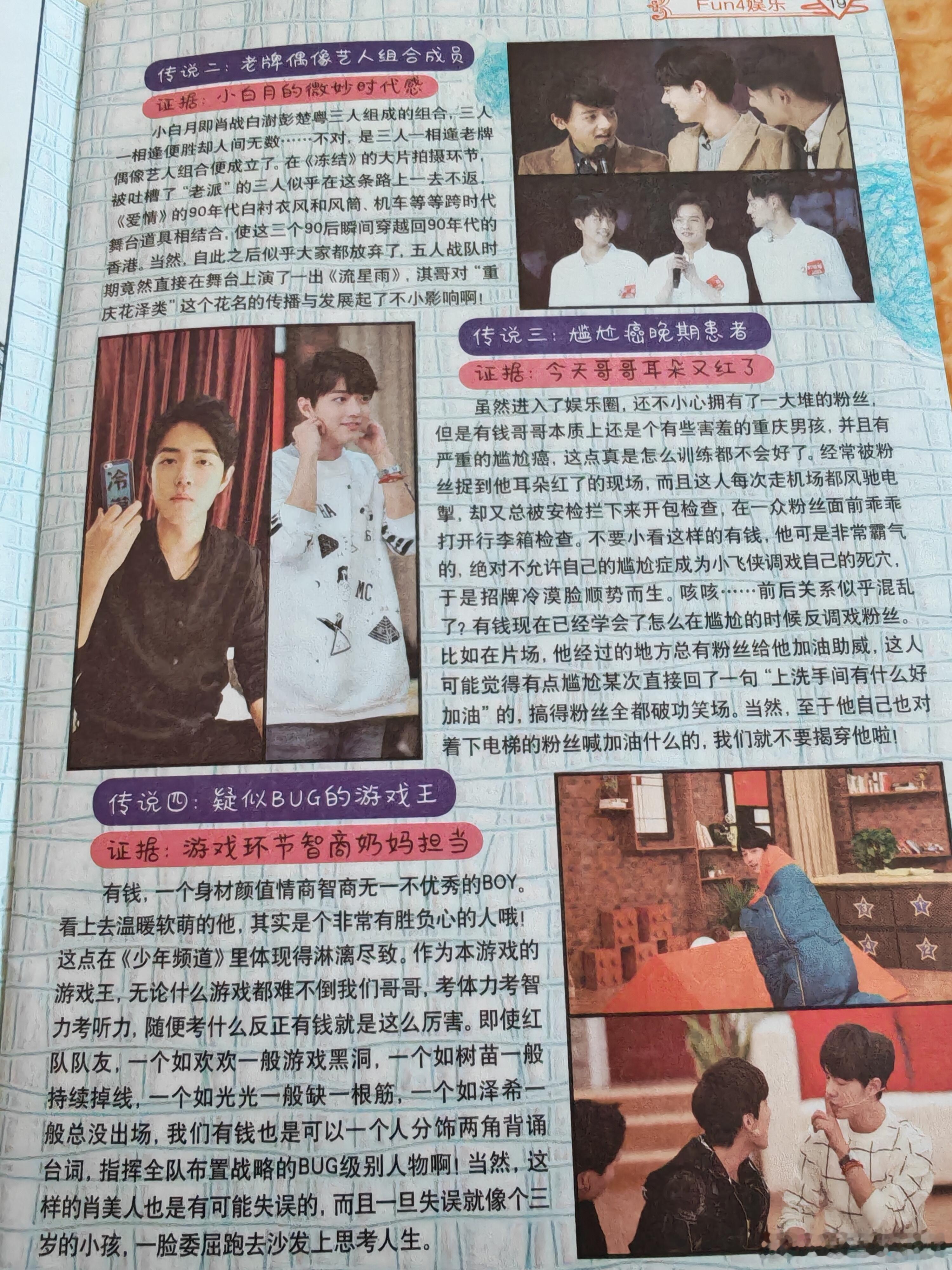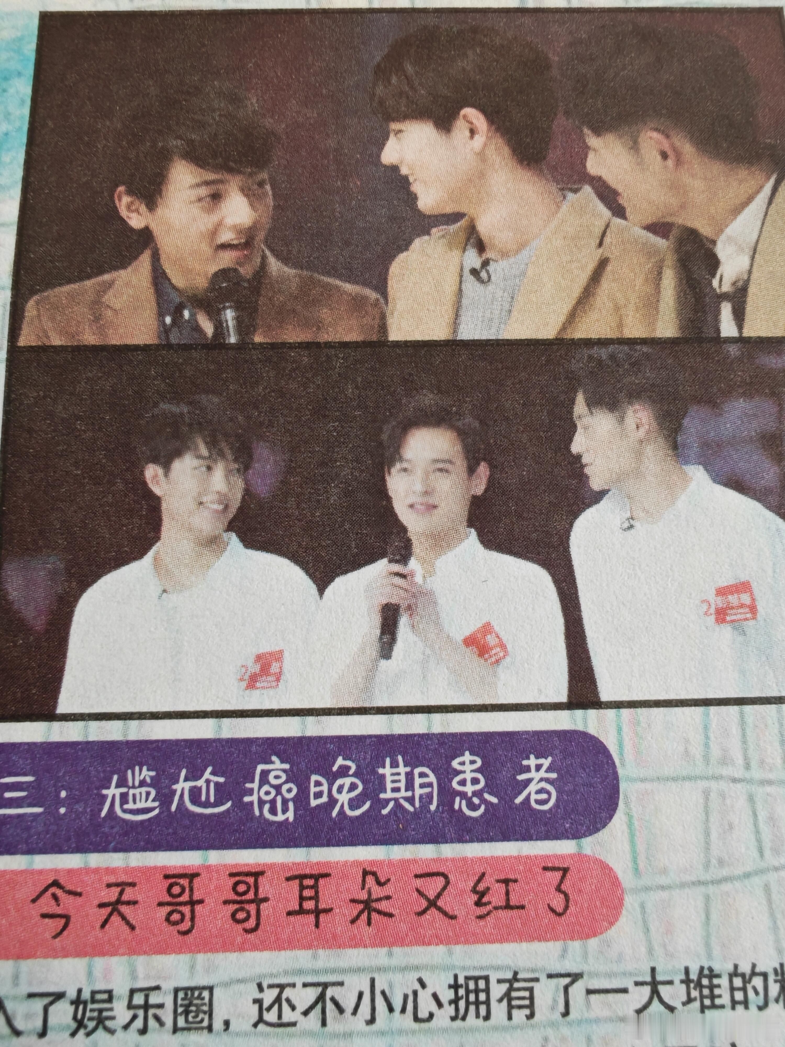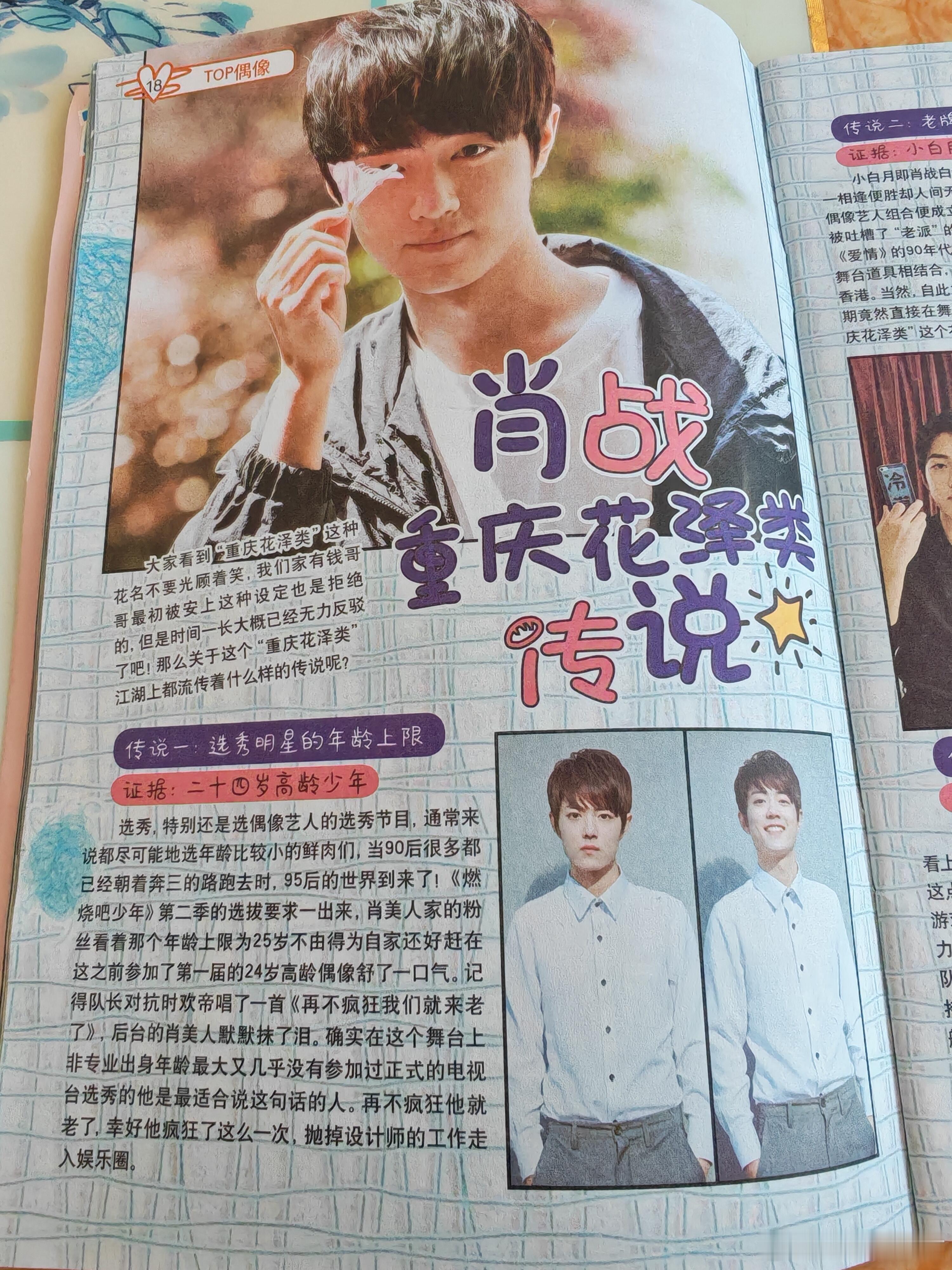 回家过年无聊翻出了一本高中时买的追星杂志发现上面居然有肖战!amazing!它在我的书架上静静躺了十年才被我发现,看了一下日期是2016年6月的,哥这个时候还不到25岁,还没出道,这个时候好像还在拍《超星星学园》,不知道杀青了没,这个时候还是圆战时期,但也还是很帅很可爱欸,被称为“重庆花泽类”的24岁参加选秀的高龄少年,尴尬癌晚期患者,虽然玩游戏很厉害胜负欲很强,但失误了也会一脸委屈地跑到沙发上思考人生的小赞赞真的超级可爱呀,突然有些感慨,当初那个24岁才踏入演艺圈从头开始没有背景没有资本的素人设计师肖战,有想过自己未来有一天会成为断层顶流,长红七年未来还有可能持续红下去的超级大明星肖战吗?