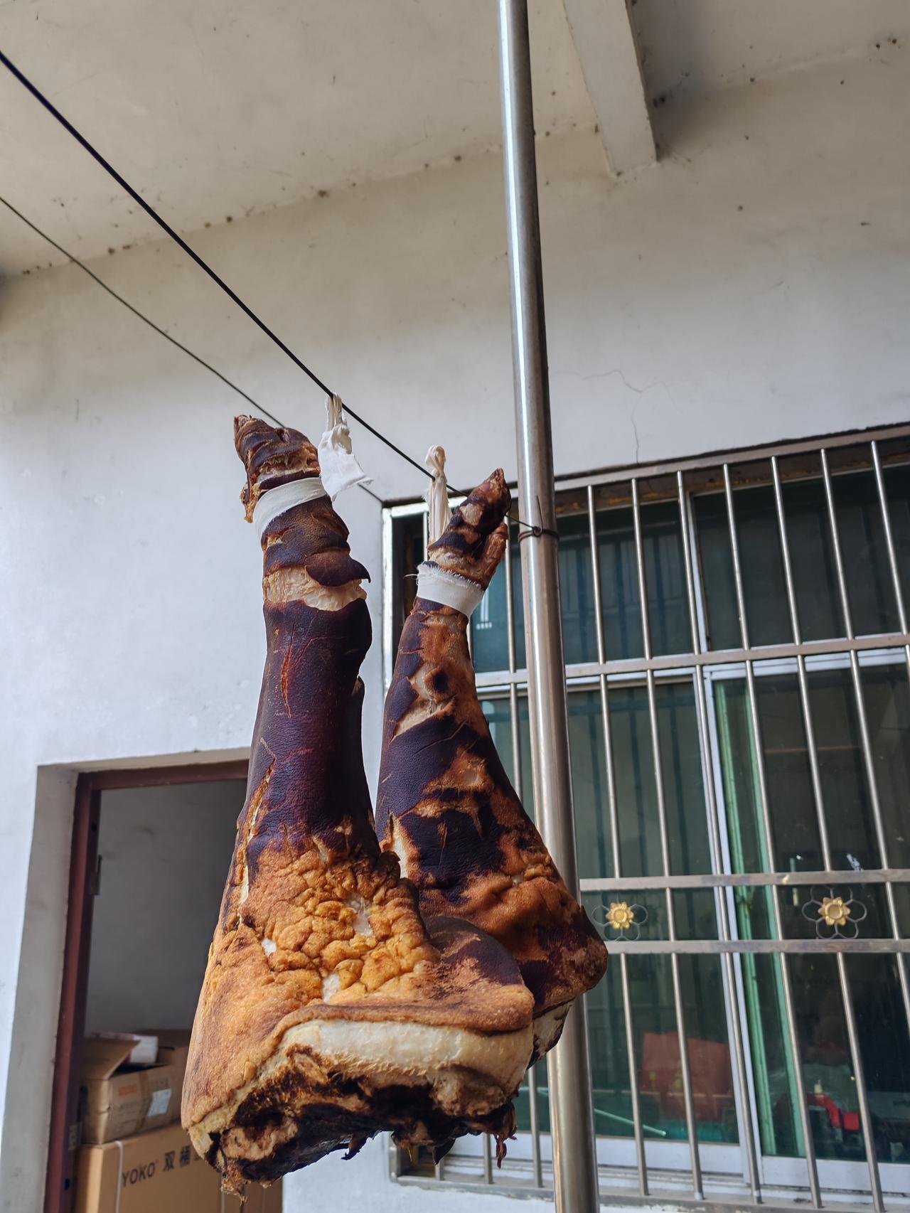 买到土猪肉了 2月14日,今天从西安一路狂奔300多公里来到汉中,这里是山区,跑山阿红长期收山货的地方,曾经我来这里寻访过一位老中医。 今天再次来到这里,这里山路弯弯,但是现在路况好多了,土路全部变成了水泥路,路修好了,但奇怪的是村子里的人少了,零零星星的坐落着几户人家,大都是老年人,守家的是老年人,种地的也是老年人。 我们看过老中医之后,又到农户家买腊肉,这是吃粮食和青草养大的黑猪,我们看了那家的猪和猪食,喂的土豆和青菜叶子,环境是很原生态的,这里腊肉虽贵点但值。 这里的人很热情,端出了干核桃招待我们。我们买了两个猪腿和一些腊排骨,主人家说我没地方洗,烧肉不方便,又贴心的用火把猪腿烧了皮,洗了一下。 收获满满的一天,今天决定在镇上整休一晚,明日入川。