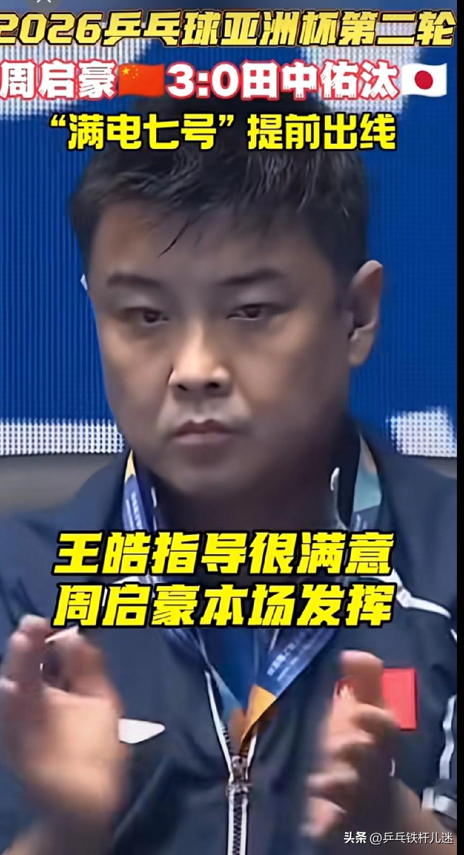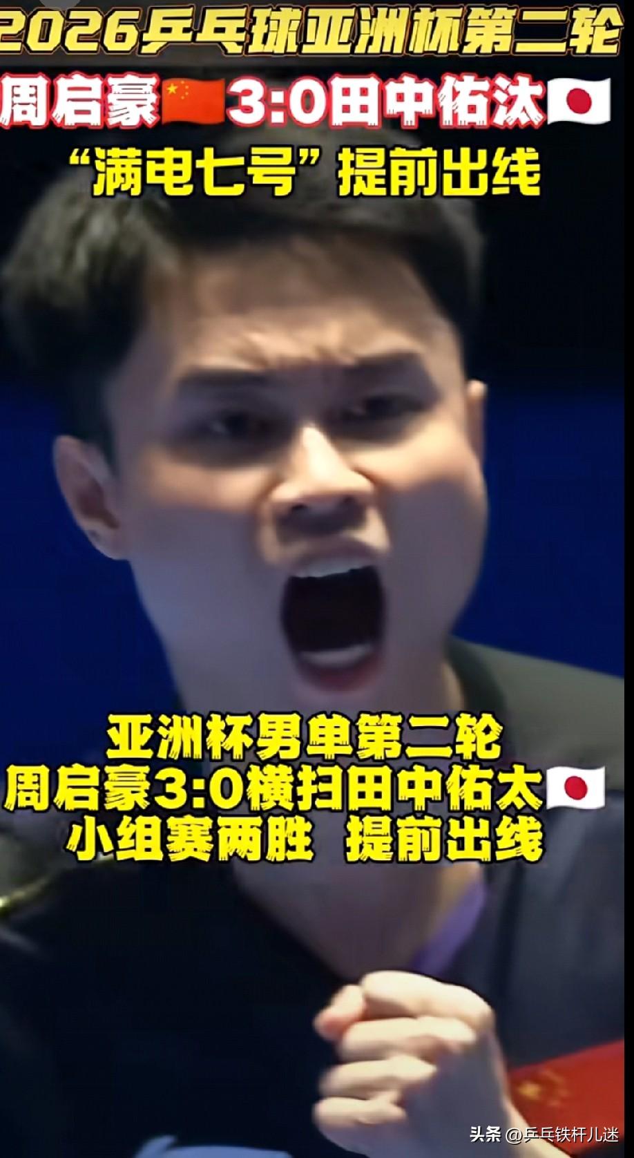 2026乒乓球亚洲杯第二轮比赛,周启豪以3:0的总比分干脆利落拿下日本田中佑太,顺利晋级下一轮。 之前不怎么见周启豪参加这种大赛,有点儿被埋没的感觉。 最近才关注到他的比赛,发现他打球干净,利索,快准狠的那种,而且很有观赏性,中远台相持能力挺好! 周启豪打得确实好,王皓教练也很满意,继续加油吧!