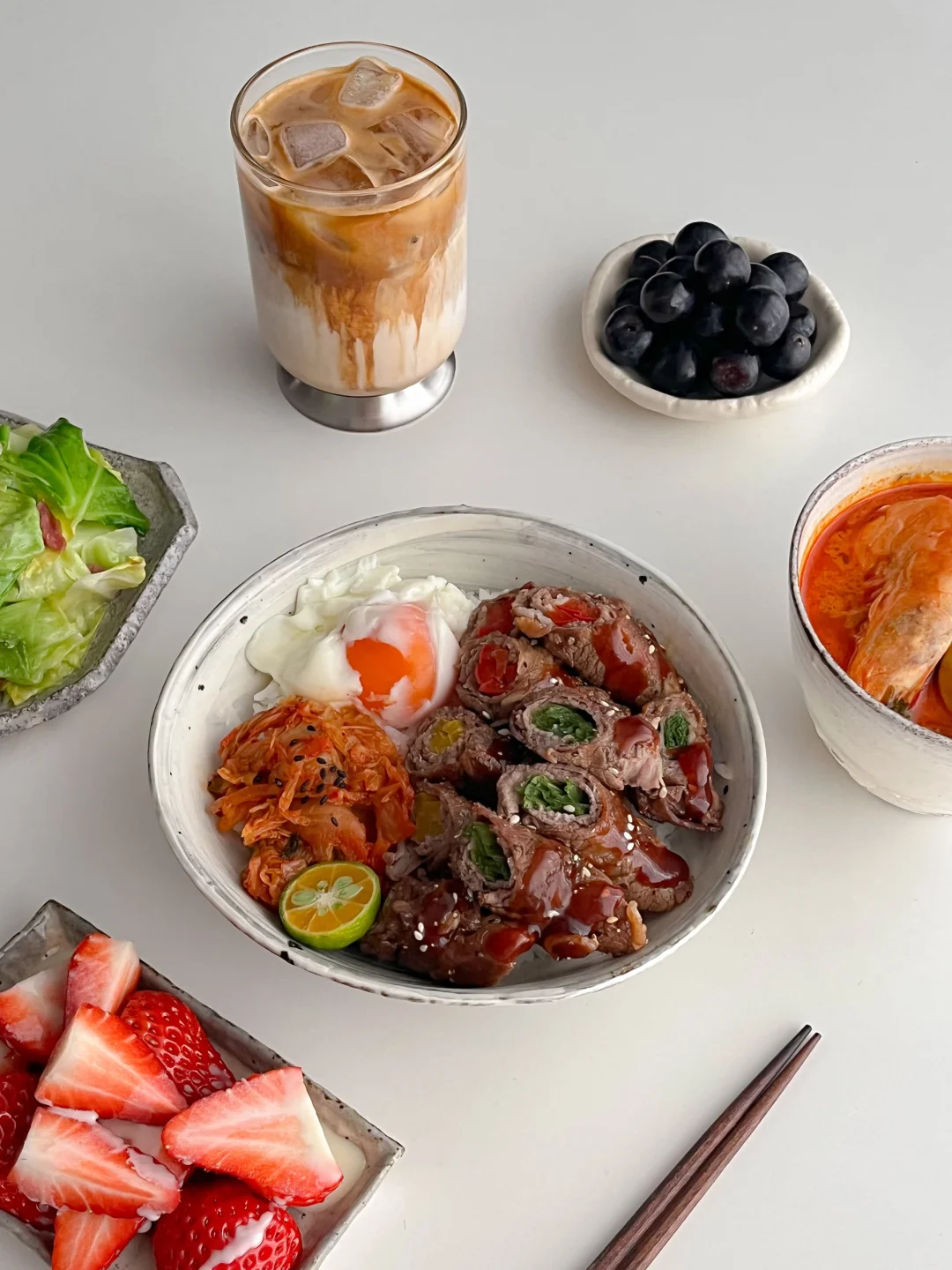 美式烧烤牛肉卷🫔 蒜香腊肠牛心菜🍃 海鲜椰汁冬阴功汤🦀 冰生椰拿铁🥥 炼乳草莓🍓 🐍尾巴啦 最后一次小饭桌 期待来年 也要好好生活呀~ 🧧把福气卷起来 🍯把甜蜜卷起来 🍀把幸运卷起来