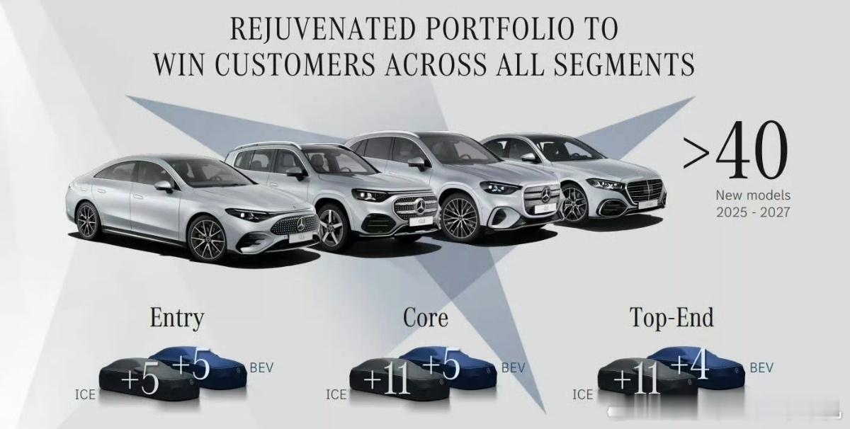 2027年将推出14款车型,其中3款为电动汽车。奔驰新能源汽车
