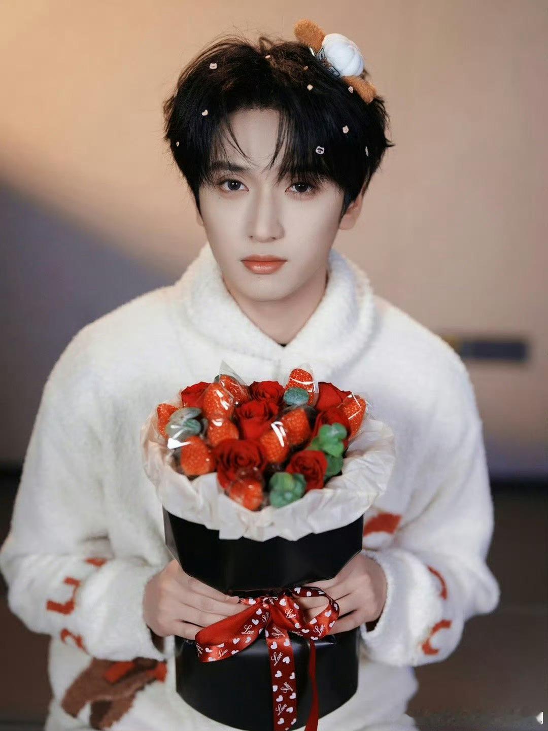 严浩翔情人节营业好会严浩翔小熊发夹 情人节被严浩翔狠狠甜到!软萌小熊发夹+清新草莓花束,氛围感满分