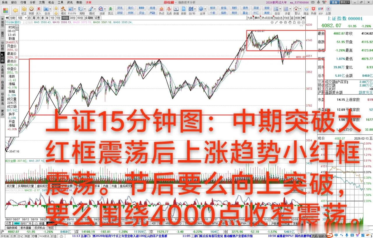 大A:节前小结2月13日大A缩量下跌1.26%,中期上涨趋势4080