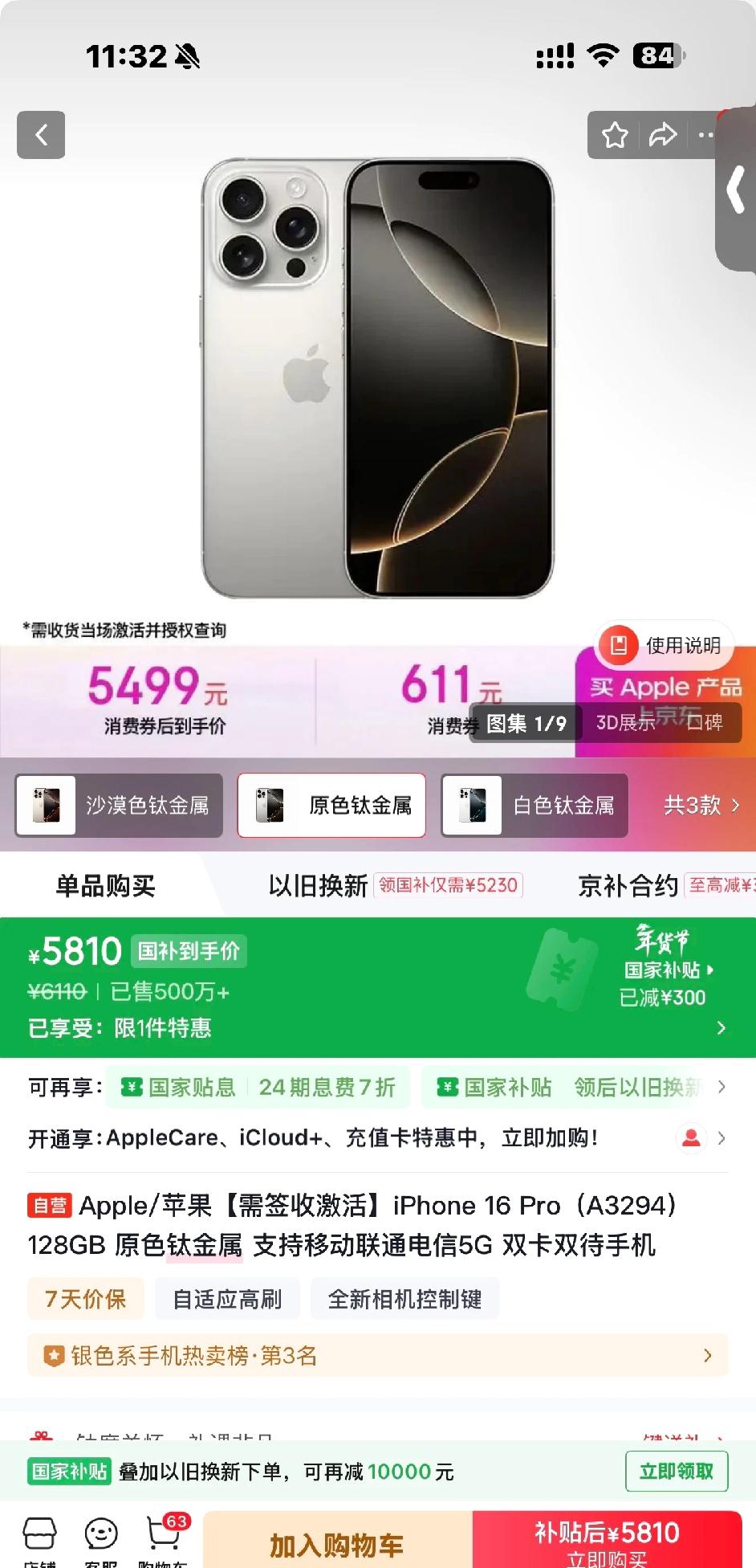 苹果16p怎么突然涨了… 昨天想着等15号国补出了万一抽到了能多便宜两百块4999的价格…现在一看怎么变成5800了…