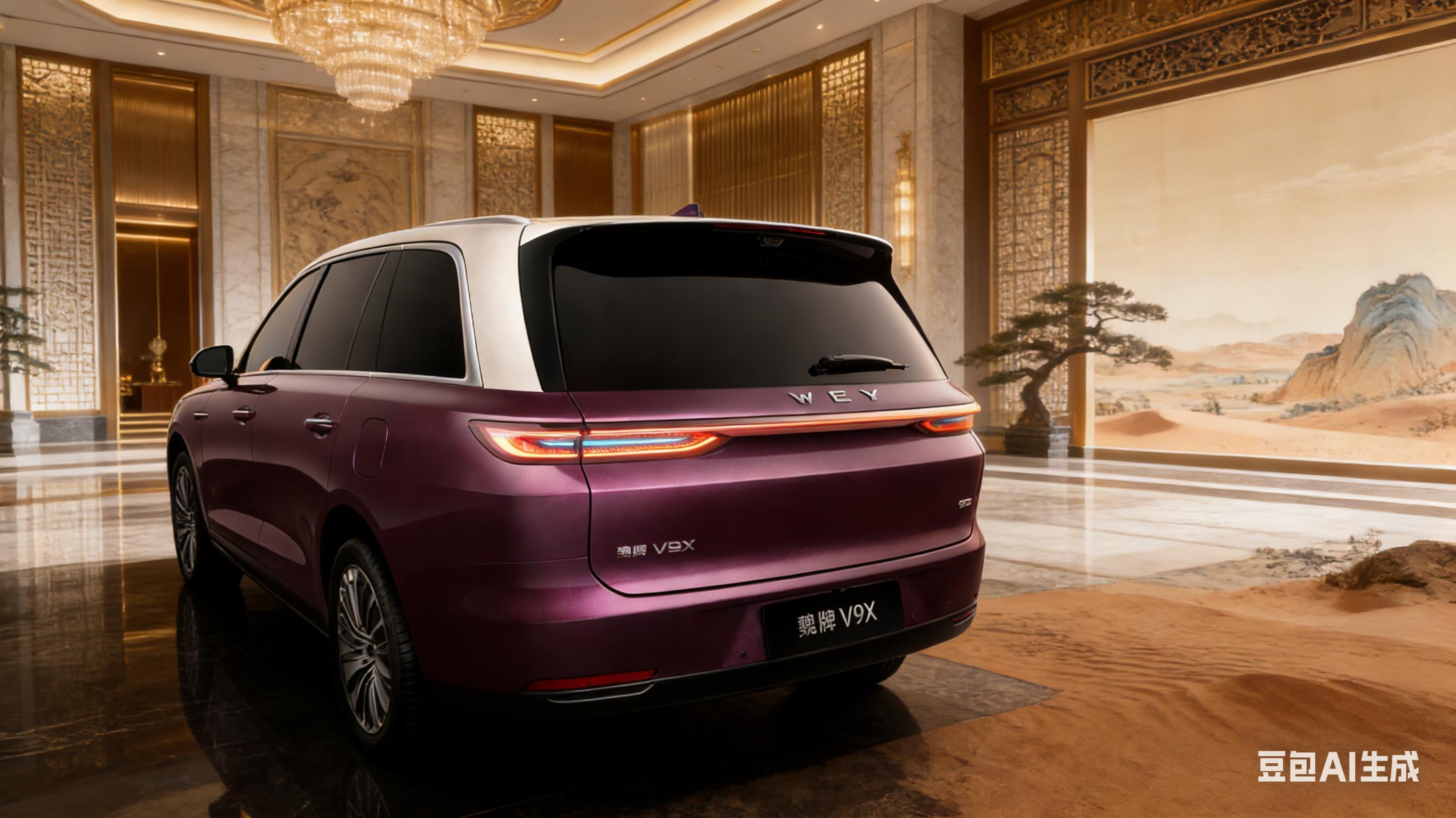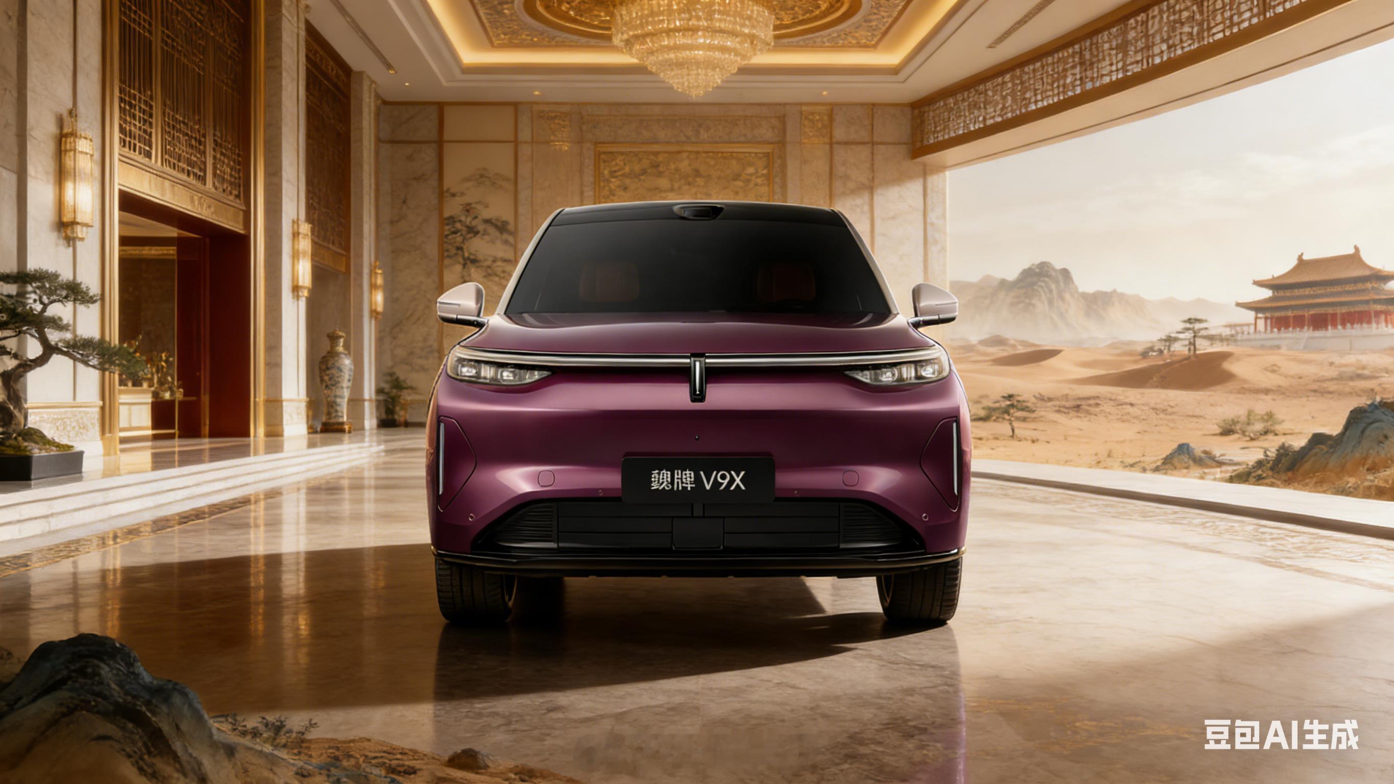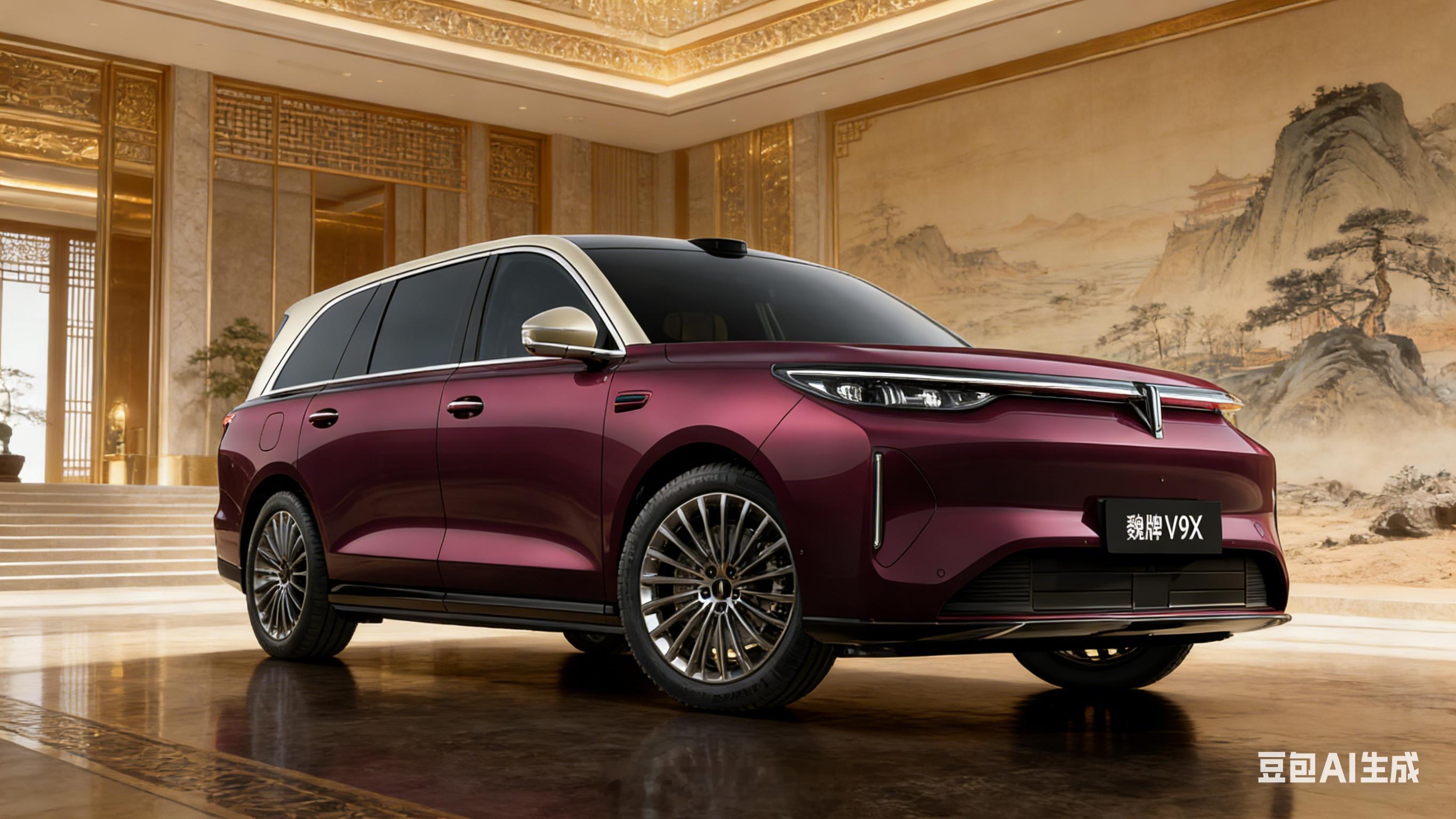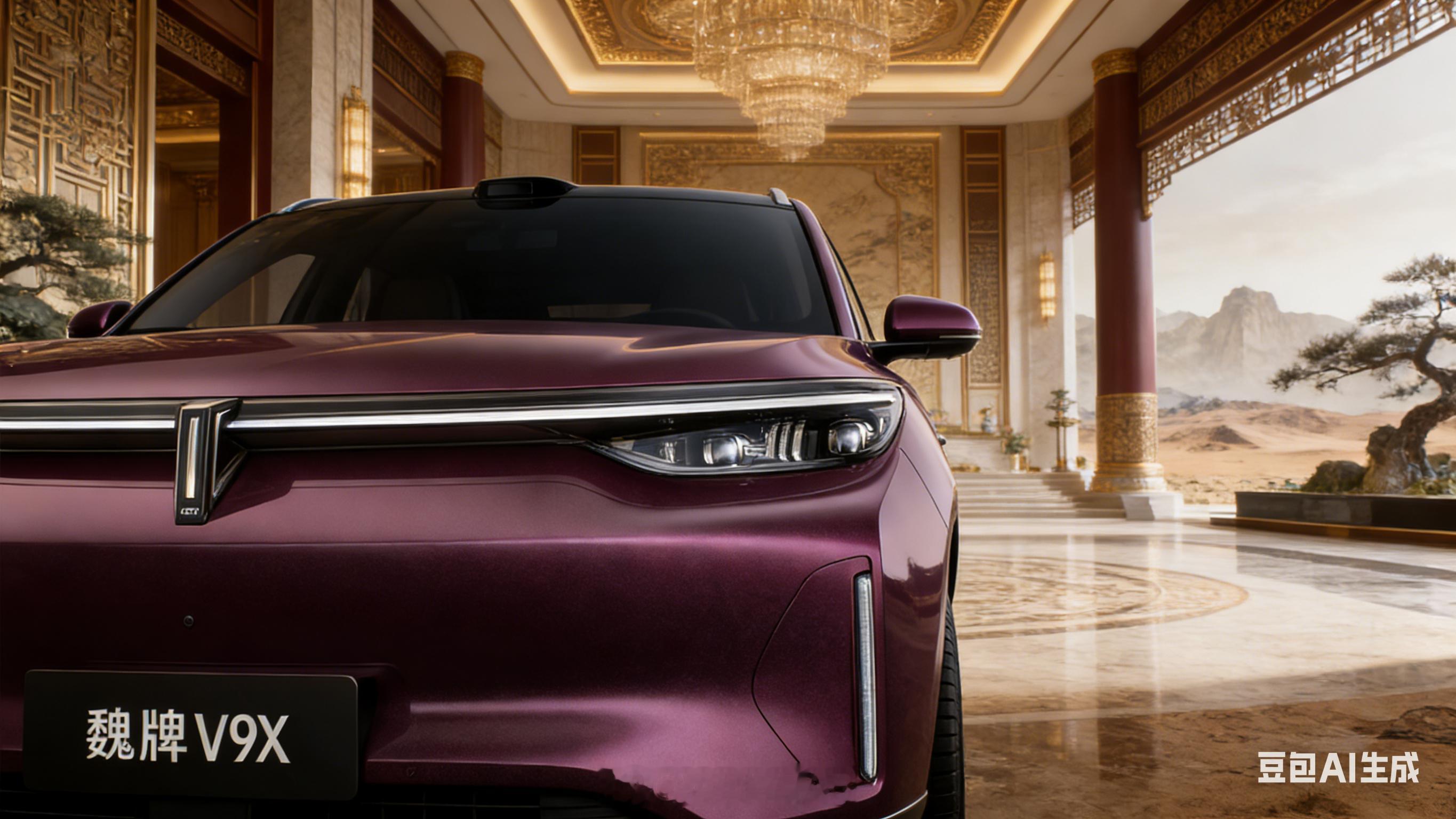 魏牌V9X外观正式亮相 魏牌 V9X 的官图上周公布了,刚好豆包今天发布 2.0 模型,就用新模型生成了一套「高奢建筑空间、新中式旷野雅境,豪华大气」的背景风格,是不是还挺像一回事的?