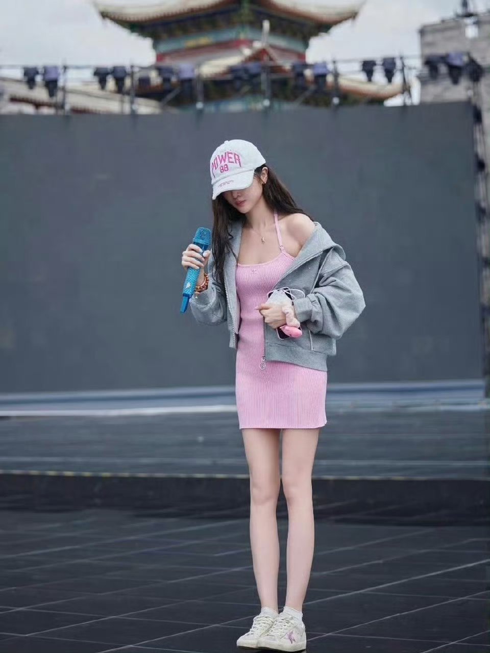 张天爱跟素人合影,胯真的好宽,大宅院似的