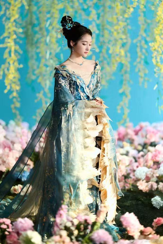 关晓彤青绿国风扮相看关晓彤这青绿国风扮相!河南春晚蓝金纱裙精致独特,裙摆飘逸,