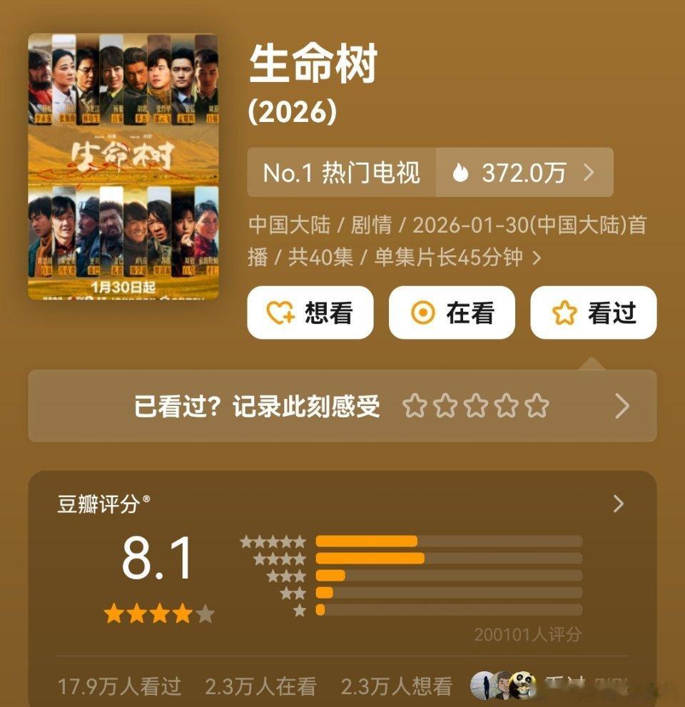 生命树开分后,评分人数增加了一万,,这个评分人数比多少古偶剧都多了很多吧。