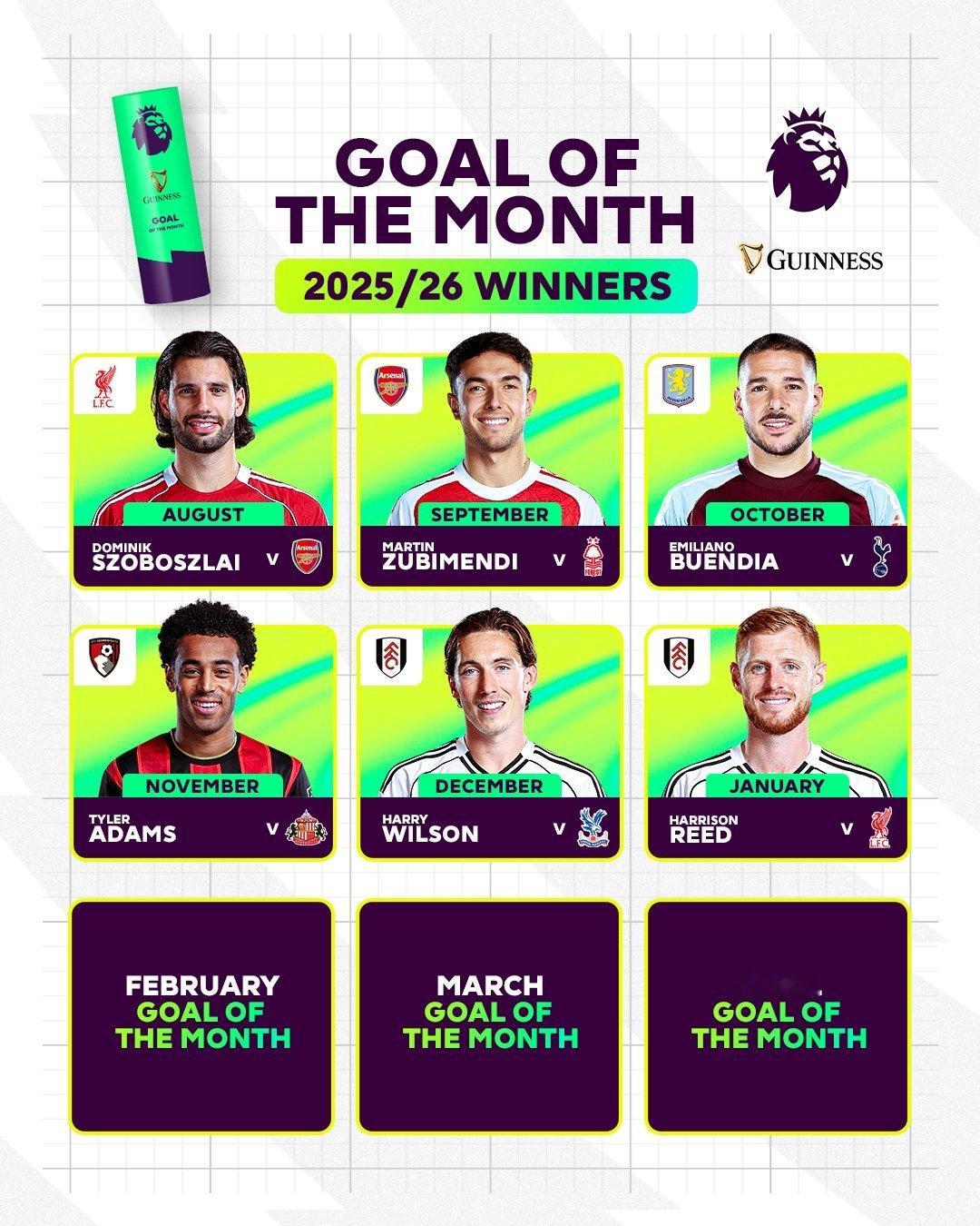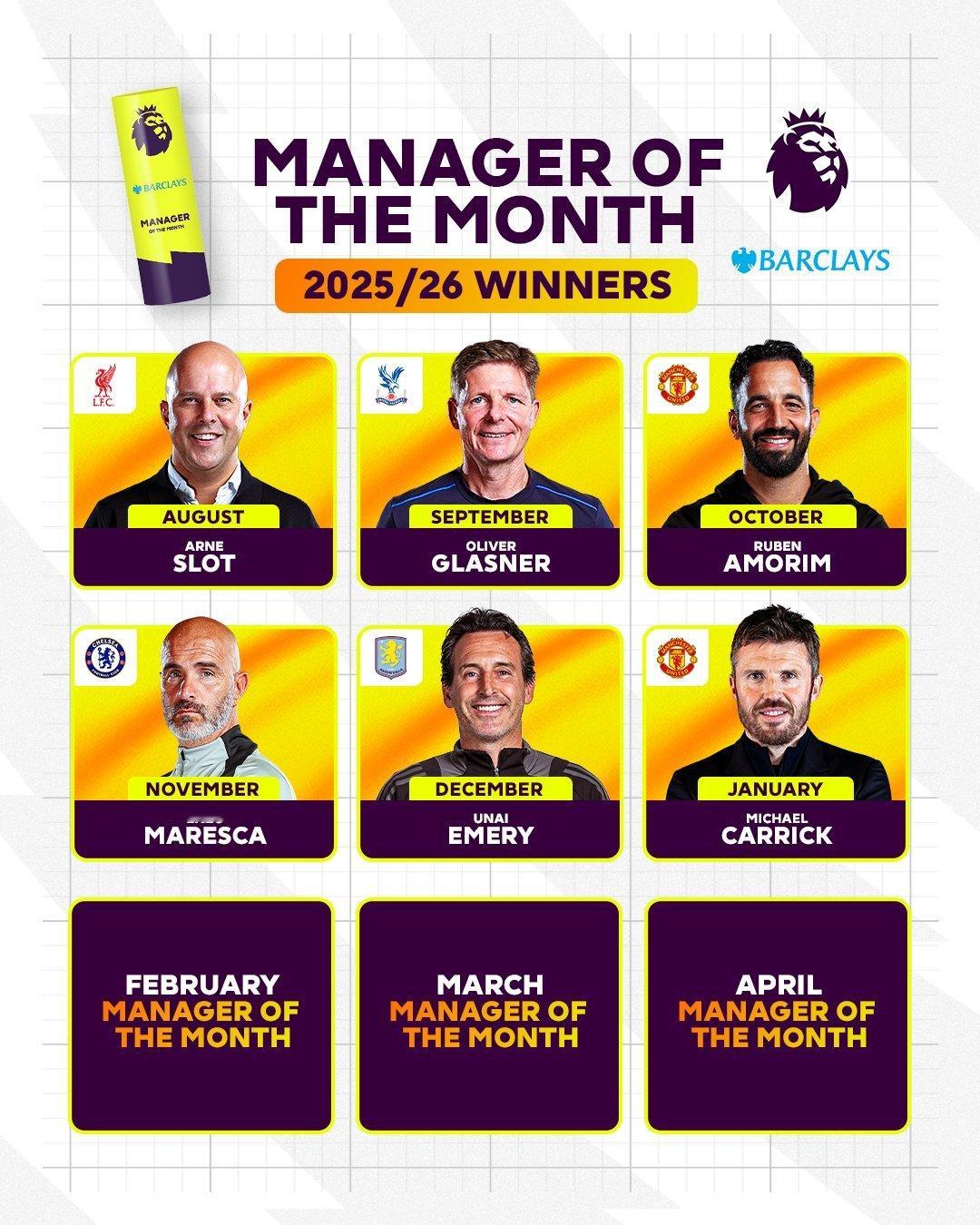 英超官推:本赛季至今所有月度奖项获得者一览👏👀
