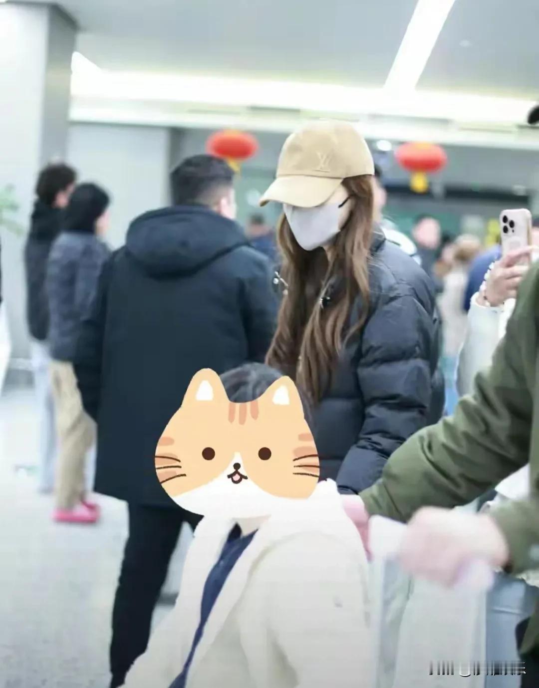 Angelababy上海机场被拍,我看到的不是明星,而是一个普通妈妈的年味 刚刷到Angelababy带小海绵现身上海机场的照片,说实话,这回真被她圈粉了。 以前明星走机场,那都是前呼后拥、助理开道。这回倒好,baby一个人推着俩大行李箱,身边就跟着9岁的小海绵。穿着黑色羽绒服,素面朝天,要不是那满手的金镯子显眼,真以为就是哪个赶着回家过年的普通妈妈。 最戳我的是一个小细节:看到有人拍照,她第一反应是侧身挡住儿子,手轻轻搭在孩子背上。那个动作特别自然,完全当妈的本能。 小海绵已经长到快1米4了,快到妈妈肩膀。一路上蹦蹦跳跳的,还会帮妈妈推箱子。孩子那开朗劲儿,一看就是在爱里长大的。 很多人还在纠结她和黄晓明离没离婚,我倒觉得没必要。看他俩现在这样挺好——1月份刚一起带娃去迪士尼过9岁生日,一个在前面开路,一个牵着孩子,配合得跟搭档似的。离婚不离娃,比那些凑合过、天天吵架的强多了。 马上过年了,baby这是带儿子回上海团聚。说白了,明星也是普通人,也要赶春运、也要置办年货、也要带孩子回家见老人。 看着她推着行李往外走的背影,忽然觉得,这才是顶流该有的样子——不是穿多贵的衣服,而是把妈妈这个身份,做得特别踏实。 Anggelebaby