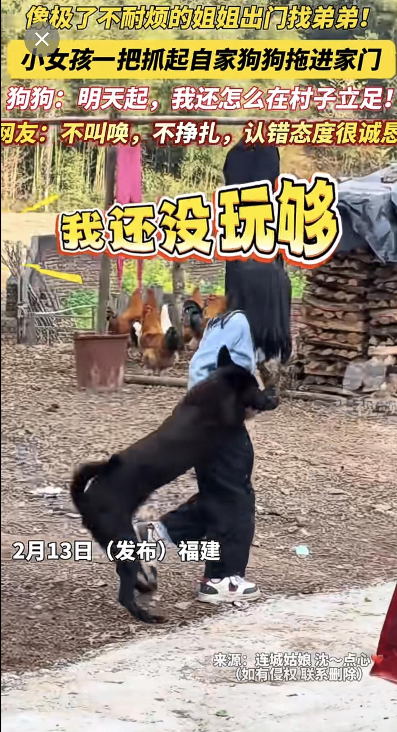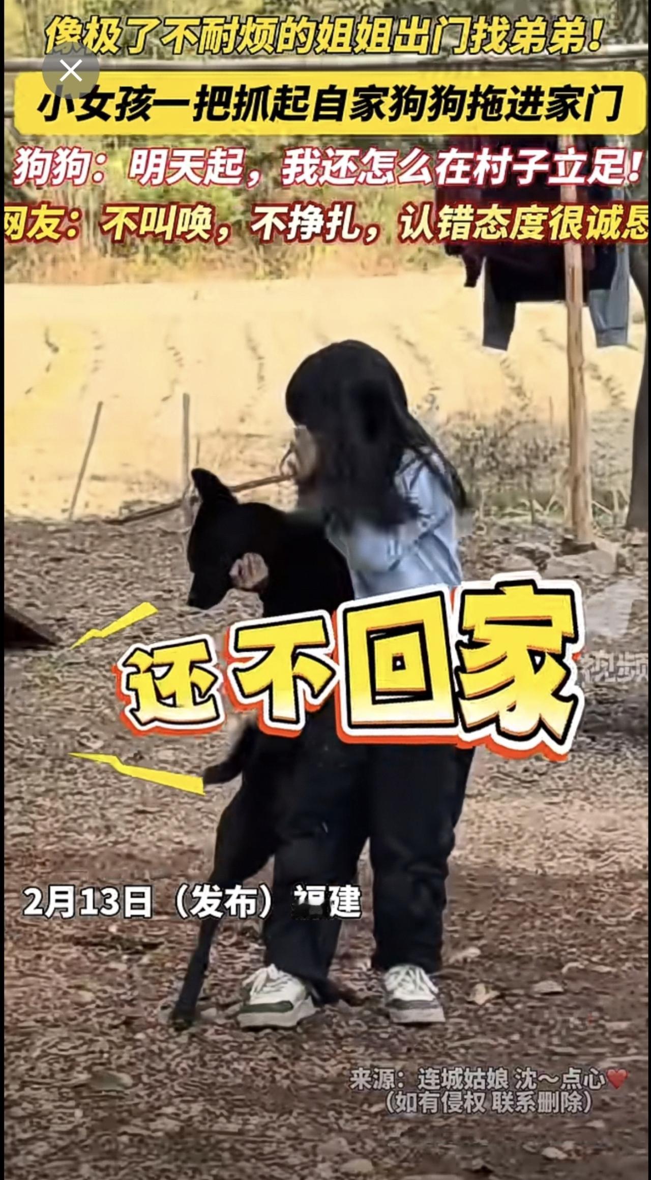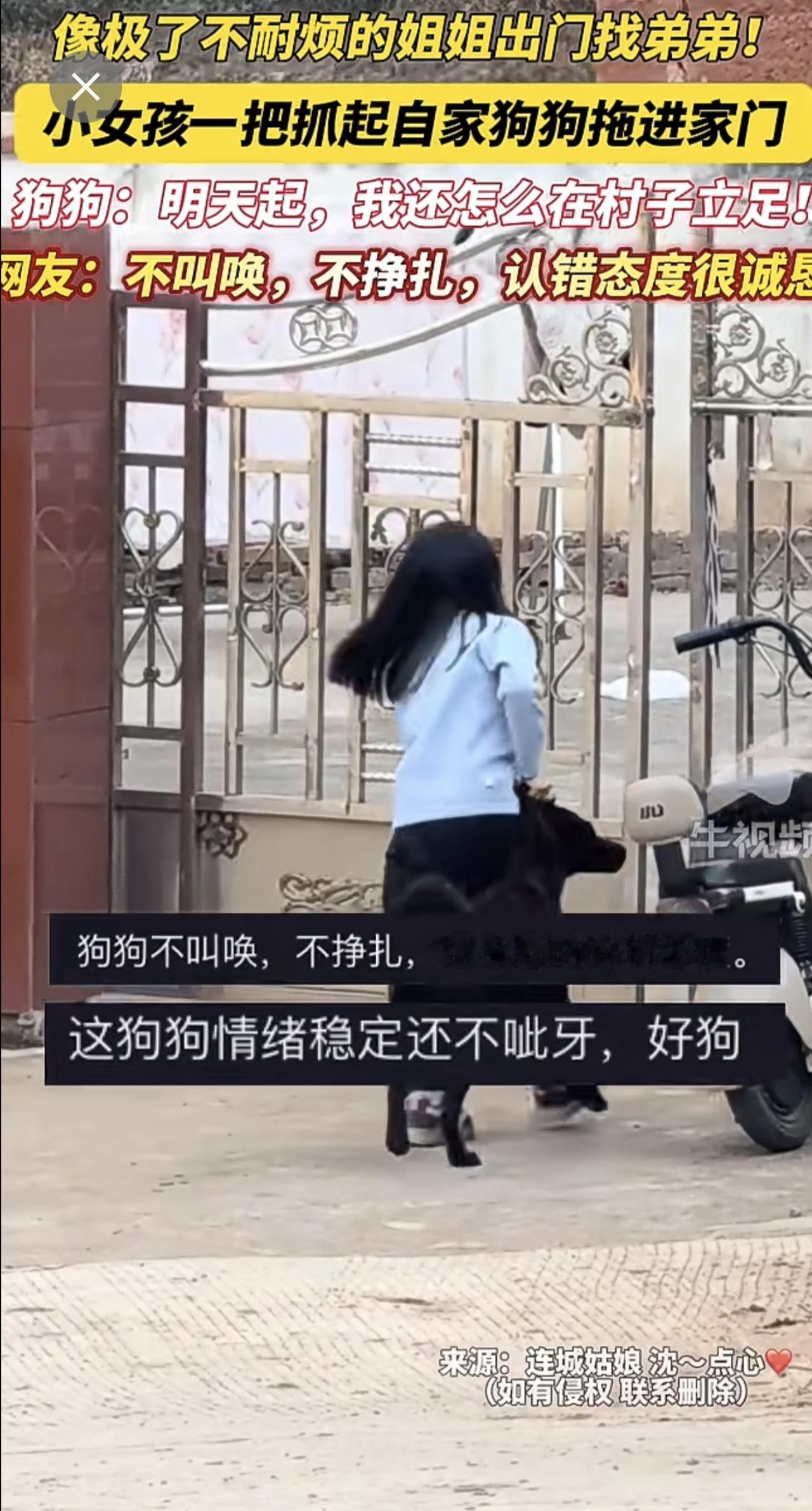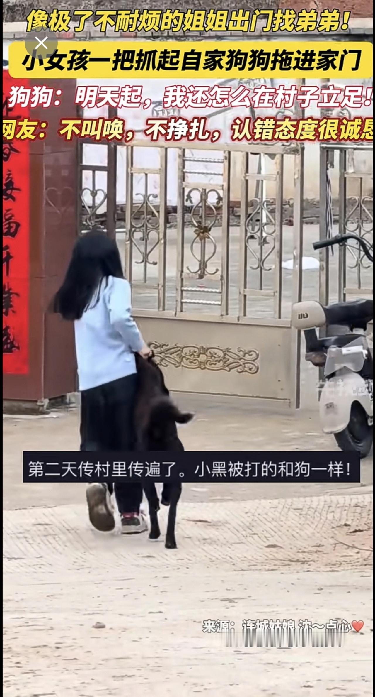 像极了不耐烦的姐姐出门找弟弟!小女孩一把抓起自家狗狗拖进家门, 狗狗:明天起,我还怎么在村子立足!网友:不叫唤,不挣扎,认错态度很诚恳!