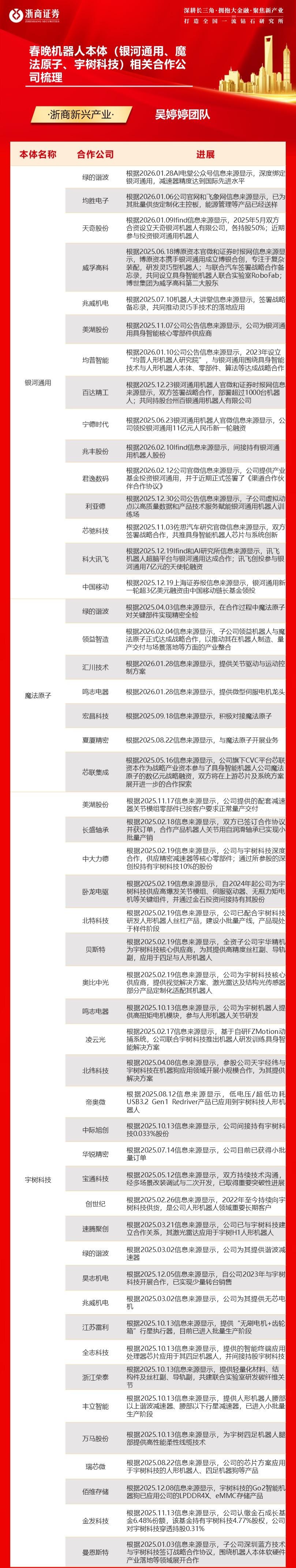 春晚机器人本体(银河通用,魔法原子,宇树科技)相关合作公司梳理