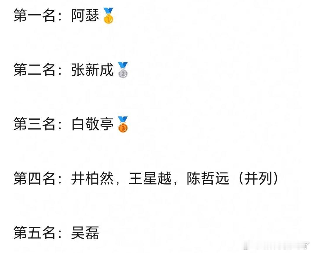第四名:井柏然,王星越,陈哲远(并列)