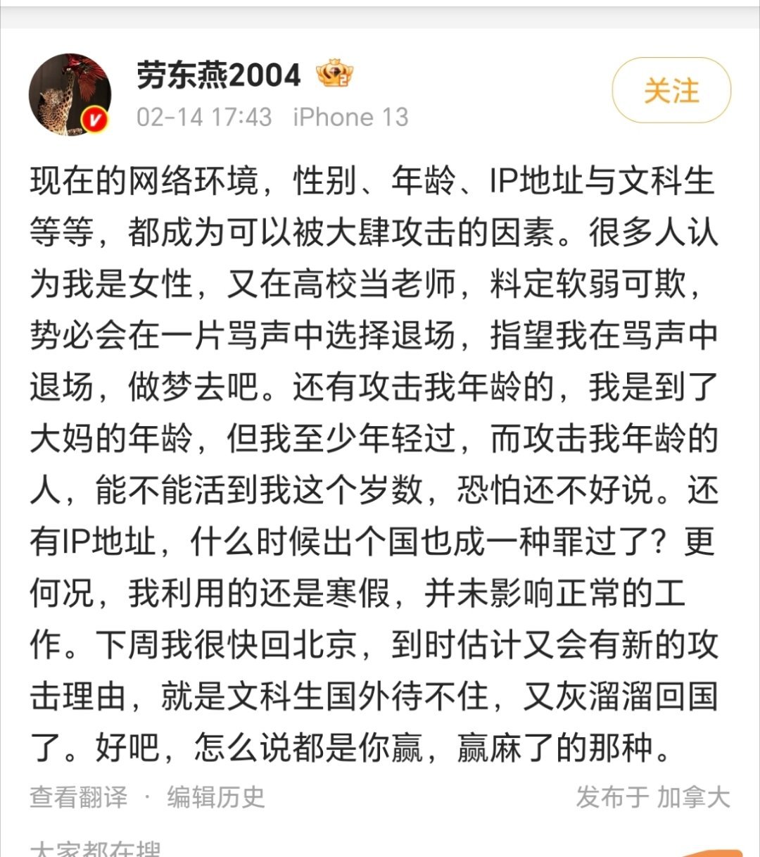 劳大教授如果是个国内二三本教授,还可以接受,毕竟微博上这类教授太多了,问题是她居