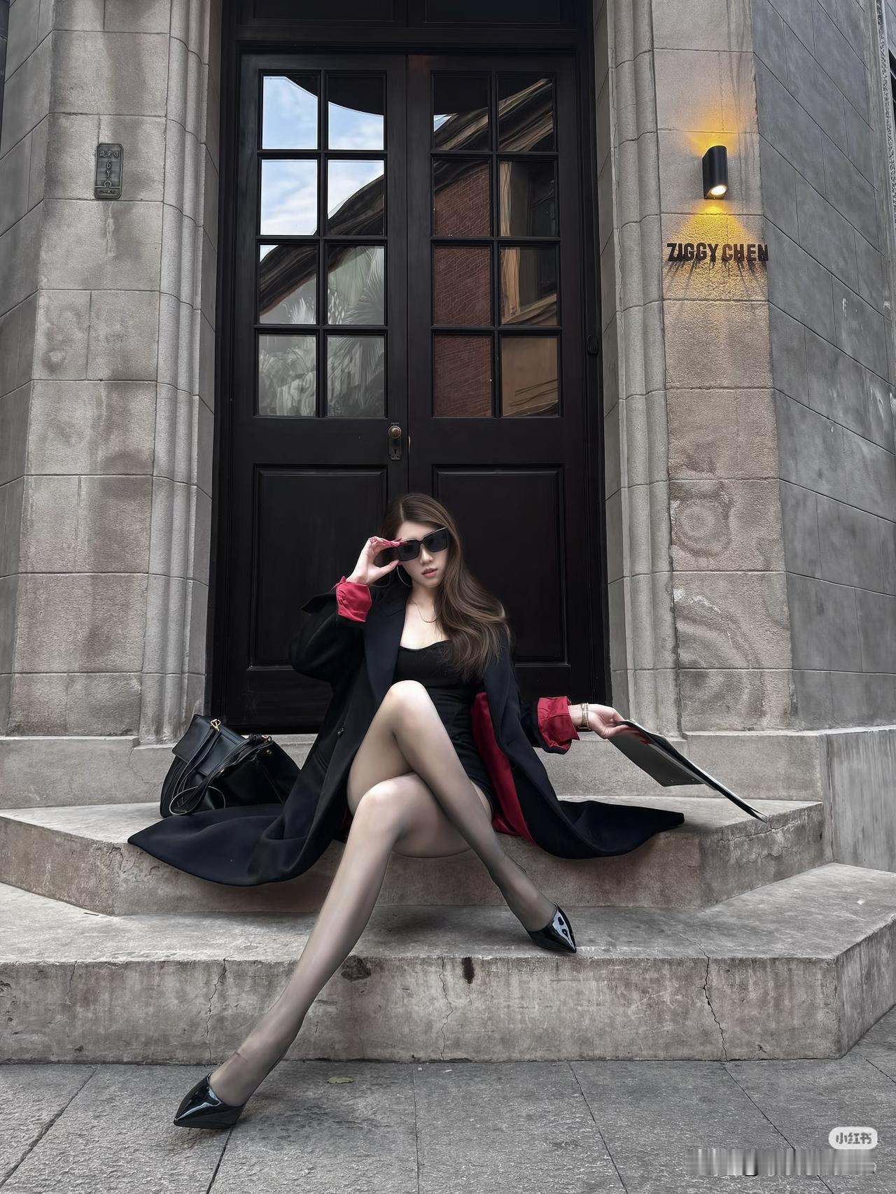 又A又飒的都市特工风|把街拍穿成电影感🎬 真的被这组「职场特工」穿搭狠狠拿捏了! 全程以黑色系为主,自带冷感滤镜,显瘦又高级,谁穿谁是气场全开的大女主。 - 粗花呢西装+抹胸+热裤+黑丝: 宽松西装打造“下衣失踪”,抹胸露出腰线,热裤+黑丝+金属头高跟鞋,又甜又野,街头感拉满,随便一站都是杂志封面。 - 毛领长大衣+修身小黑裙+红底高跟: 大衣的毛领增添贵气,内里红衬里不经意流露,搭配红底高跟,走路带风,温柔里藏着致命气场,聚会约会都能slay全场。 - 复古门廊+报纸道具: 把报纸、工牌当配饰,在老建筑台阶上摆拍,瞬间化身90年代港片里的干练女主,氛围感直接封神。 不用费心搭配,照着穿就很好看, 酷飒、高级、气场全都有, 女生就要这样穿,又美又有范儿! 喜欢这种风格的姐妹,赶紧收藏起来抄作业~