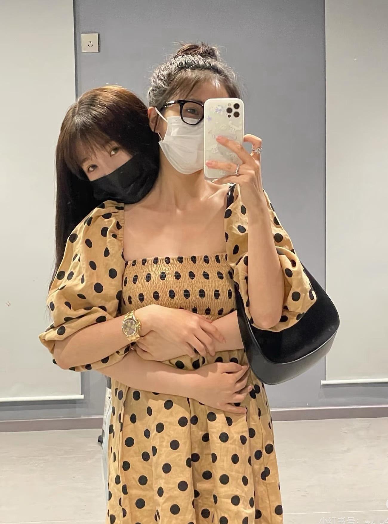 张天爱跟素人合影,胯真的好宽,大宅院似的