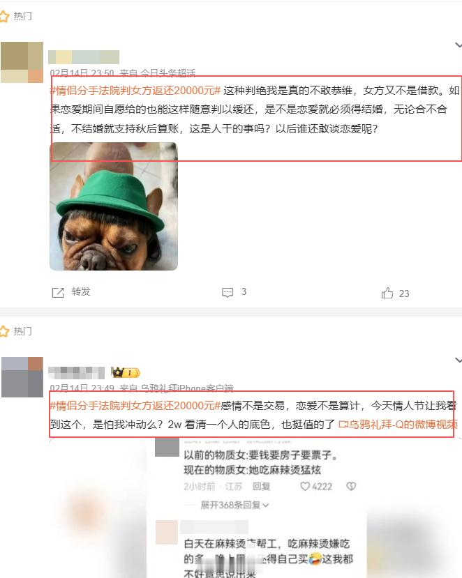 情侣分手法院判女方返还20000元 转账30508元和2件金饰品(总价值估计在6万以上),最后法院以“超出维系、巩固恋爱”为由,只判还2万,为什么这么多人破防?给这么钱和金饰了,说明冲着结婚去的,多正常的判决啊,2万其实还返还少了。说白了,谈恋爱又不是你的提款机?