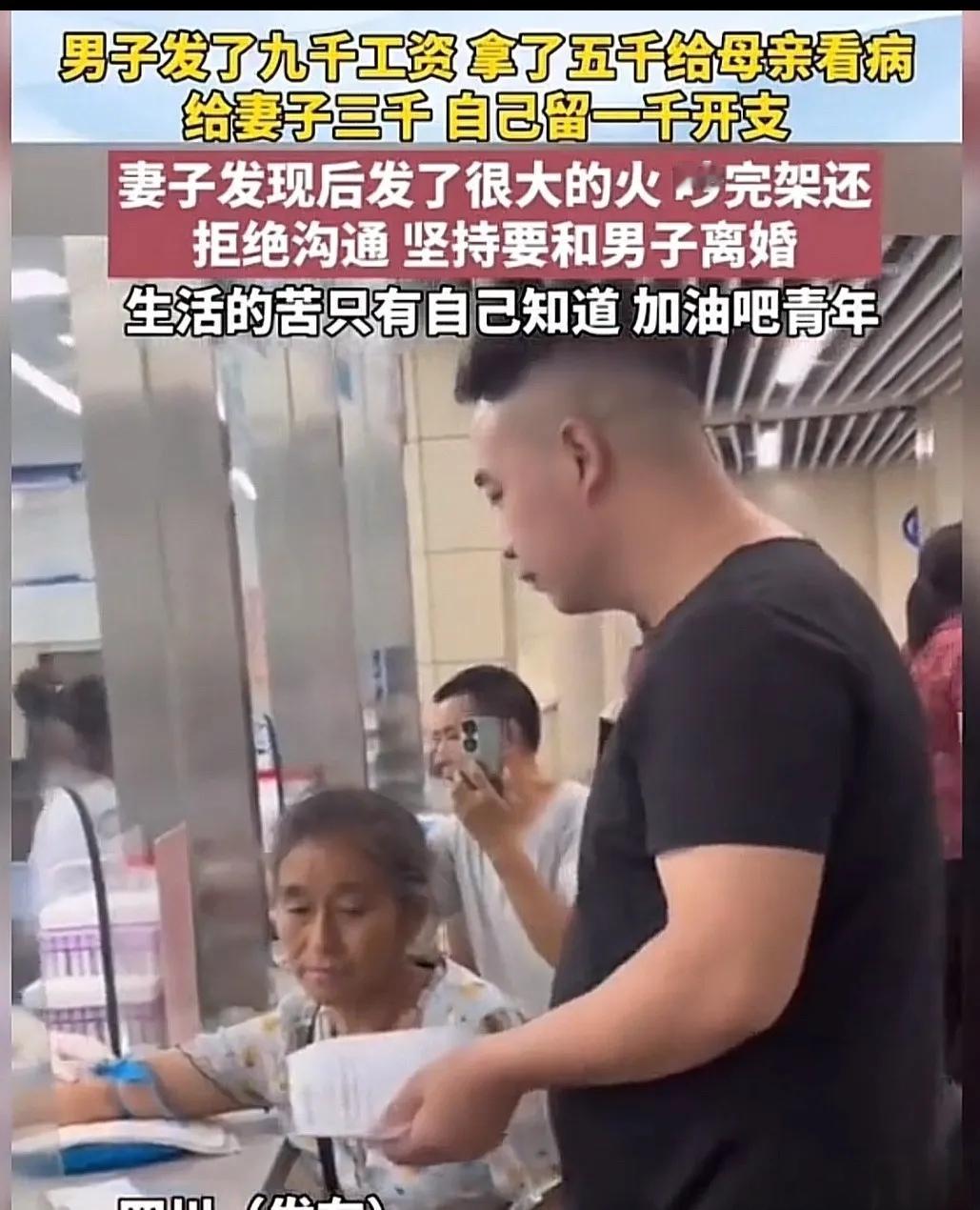 刚发完工资,他却躲在楼道里掉眼泪:给亲妈5000块看病,有错吗? 男人刚揣着热乎的工资条往家走,心里就盘算开了——这个月运气不错,发了9000块。 他第一时间绕道去了趟老妈那儿。老太太身子骨最近一直不利索,咳嗽断断续续个把月了,愣是舍不得去医院查。男人从兜里掏出5000块钱,硬塞到老人手里:“妈,明天就去医院,别拖了,钱的事儿您甭操心。” 老母亲眼眶红了,直摆手说不要,儿子挣钱多不容易啊。男人没多待,放下钱就急匆匆走了,临出门还回头叮嘱了好几遍。 其实他心里跟明镜似的,这事儿不能让媳妇知道。婆媳俩这些年处得不对付,要是让她知道自己偷偷给婆婆这么大一笔钱,家里非得掀了屋顶不可。 回家的路上他反复盘算:给老妈5000,自己留1000块零花——男人在外头跑,烟钱、偶尔跟同事吃个饭,兜里总不能空。剩下的3000块,他打算一分不留全交给媳妇,家里水电煤气、孩子吃喝拉撒,都指着这个。 可纸哪能包住火。 回到家,他把3000块钱递给媳妇的时候,对方的脸一下子就沉下来了。媳妇盯着他问:“9000块工资,你就拿回来3000?” 男人支支吾吾半天,到底还是说了实话:给了老妈5000看病。 话音还没落,媳妇就炸了。 她又哭又闹,指着男人的鼻子骂他是“妈宝男”,说婆婆肯定在背后挑唆,要不然他怎么能干出这种先斩后奏的事儿来?最后撂下一句狠话:你现在就去把那5000块钱要回来,要不回来,咱俩就离婚! 男人愣在原地,半天没吭声。 他不是不想解释,可解释什么呢?那是自己亲妈,病了,躺在那儿等着钱救命。这钱,他怎么能去要回来? 媳妇见他不吭声,当晚就收拾东西回了娘家。走之前扔下一句话:“你想清楚,要你妈还是要这个家。” 门“砰”地一声关上,屋子里一下子空得吓人。 这个四十来岁的男人,平时再苦再累也没掉过泪,那天晚上却蹲在客厅地板上,抱着头哭了。 他把这事儿发到网上,想问大伙儿一句:我给自己亲妈拿钱看病,到底错在哪儿了? 评论区吵翻了天。 有人说他有错在先——婚后的钱是夫妻共同财产,给这么大一笔钱,哪能不跟媳妇商量一声?这是起码的尊重。 也有人说他没错——亲妈生病了当儿子的能不管?媳妇为这事儿闹离婚,太不讲道理了。 其实这事要从法律角度掰扯掰扯。根据《民法典》第1062条,婚后夫妻任何一方的工资收入,都属于夫妻共同财产。男方私下转走5000块给母亲,确实属于擅自处分共同财产,程序上有问题。 但法律也规定了,子女对父母有赡养扶助的义务。母亲生病急需用钱,属于“一方负有法定扶养义务的人患重大疾病需要医治”的特殊情况。在这种情况下,动用共同财产给母亲治病,不仅是道德要求,也是法律义务。 所以这事难就难在——情理上他没错,法理上他理亏。 今日话题: 如果你是这位丈夫,会怎么做?如果你是他媳妇,能原谅这次“先斩后奏”吗?欢迎在评论区说说你的看法。 (资料来源:本文根据真实案例及《民法典》相关条款整理)