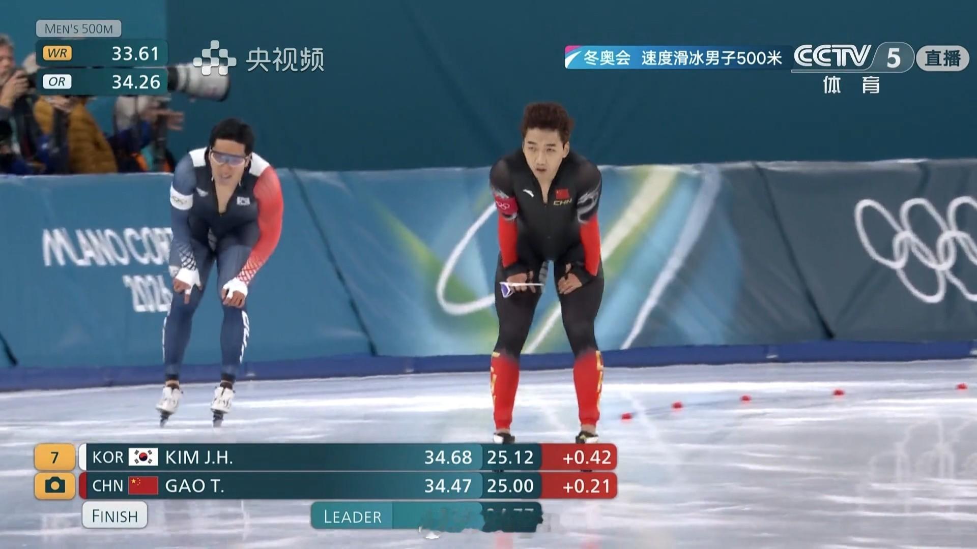 2026年米兰科尔蒂纳冬奥会 高亭宇34.47暂列目前第三