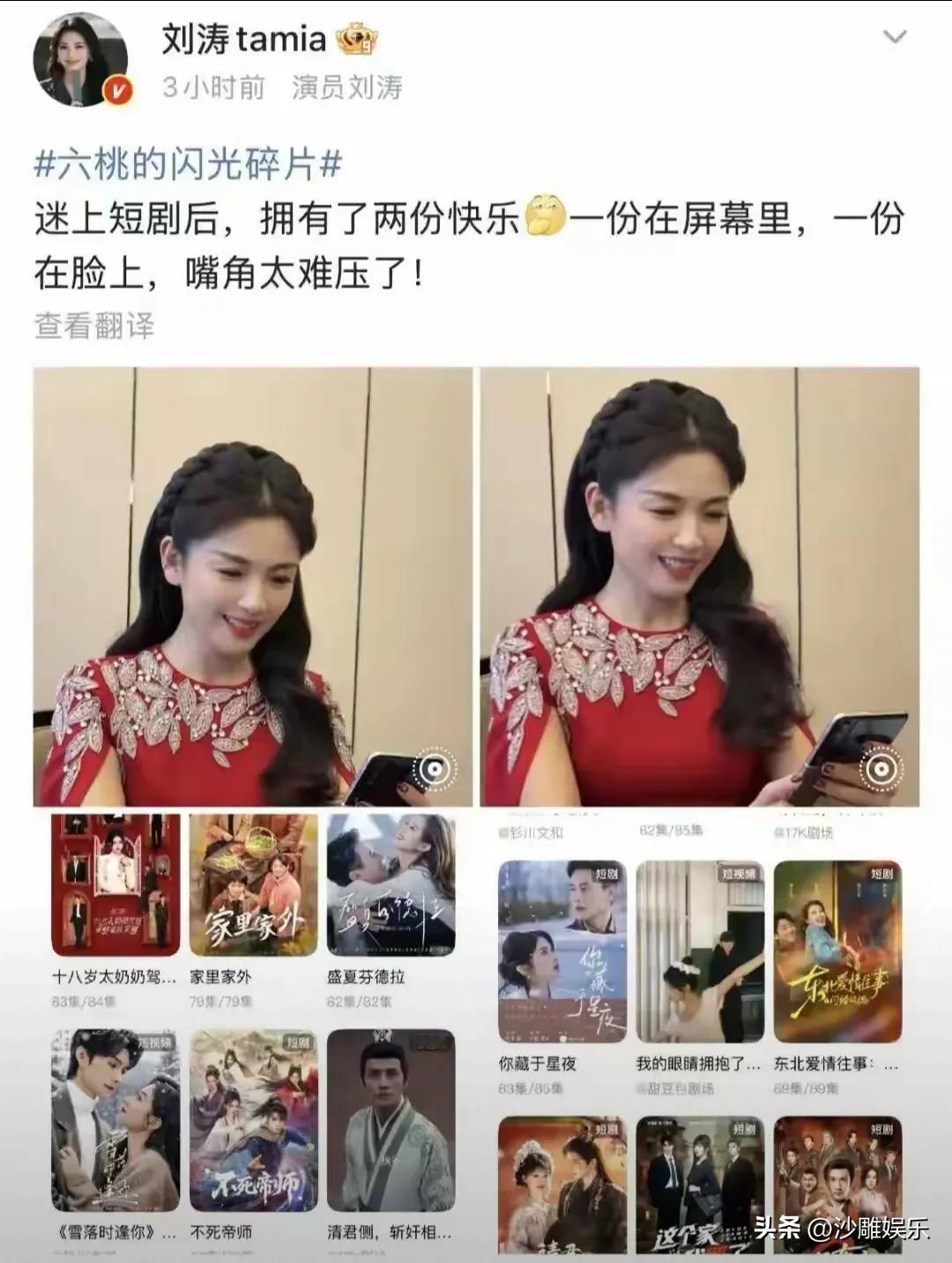 刘涛晒短剧片单,我看了却想哭:原来大明星和我们一样,也需要这点“俗”快乐 说实话,看到刘涛晒出那张短剧收藏片单时,我第一反应不是笑,是心里暖了一下。 照片里的她拿着手机,嘴角压都压不住,满脸姨母笑 。那一刻她不是那个演《琅琊榜》的霓凰郡主,也不是《欢乐颂》里的安迪,就是一个普通的、窝在沙发上刷剧的姐妹。 刘涛说迷上短剧后有了“两份快乐”,一份在屏幕里,一份在脸上 。这话听着实在。她收藏的《家里家外》《盛夏芬德拉》这些剧 ,说白了就是我们天天刷的那些。原来大明星熬夜追的,和我们是一样的“电子榨菜”。 更好玩的是,她闺蜜秦海璐早就“中毒”了,两人现在见面就问“你看那个没”,追剧表情都被网友说成“一比一复制粘贴” 。两个70后影后,凑一块儿聊短剧,这画面想想都乐。 有人可能会说,刘涛这样的实力派,怎么还迷上短剧了? 我倒觉得,这才叫真实。她之前在综艺里和短剧演员柯淳搭戏 ,那是工作。但收工回家,窝在沙发上刷手机,那是生活。演戏是给别人看的,看什么是给自己选的。 其实这事戳中我们的是:原来不管是谁,在生活压得人喘不过气的时候,需要的不是什么高大上的艺术,就是那十几分钟不用动脑子的快乐。刘涛有句话说得特别好,短剧的快乐“一份在屏幕里,一份在脸上” 。能让你脸上有笑的东西,就是好东西。 所以别管什么高雅低俗,能让你在睡前笑出声的,就是今天赚到的。这一点,影后和咱老百姓,终于平等了。