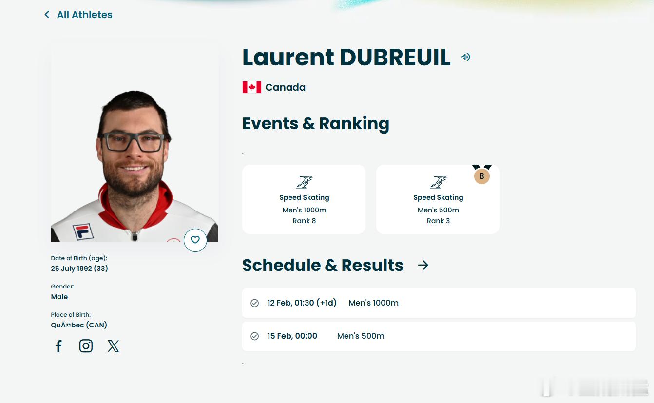 Laurent Dubreuil,本届冬奥速滑男子500米季军。