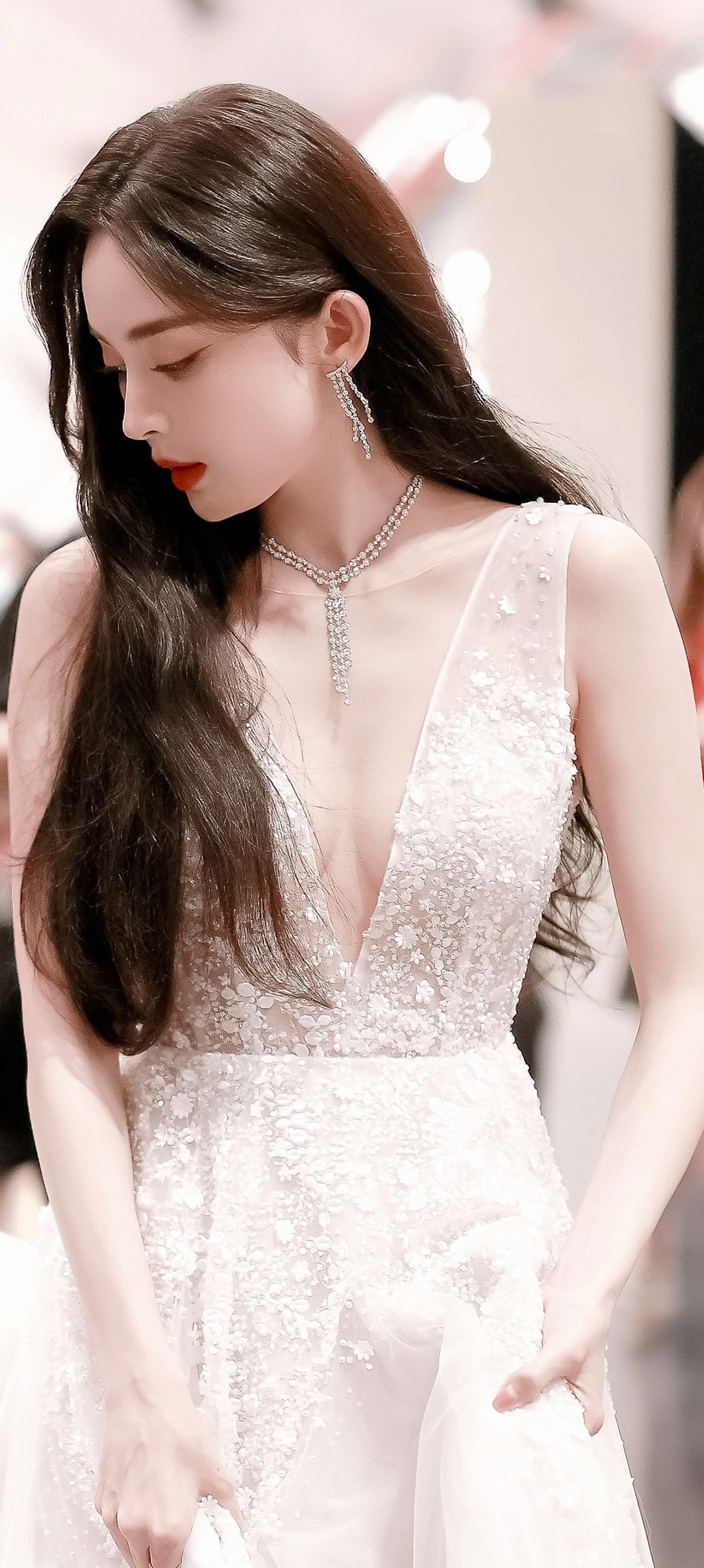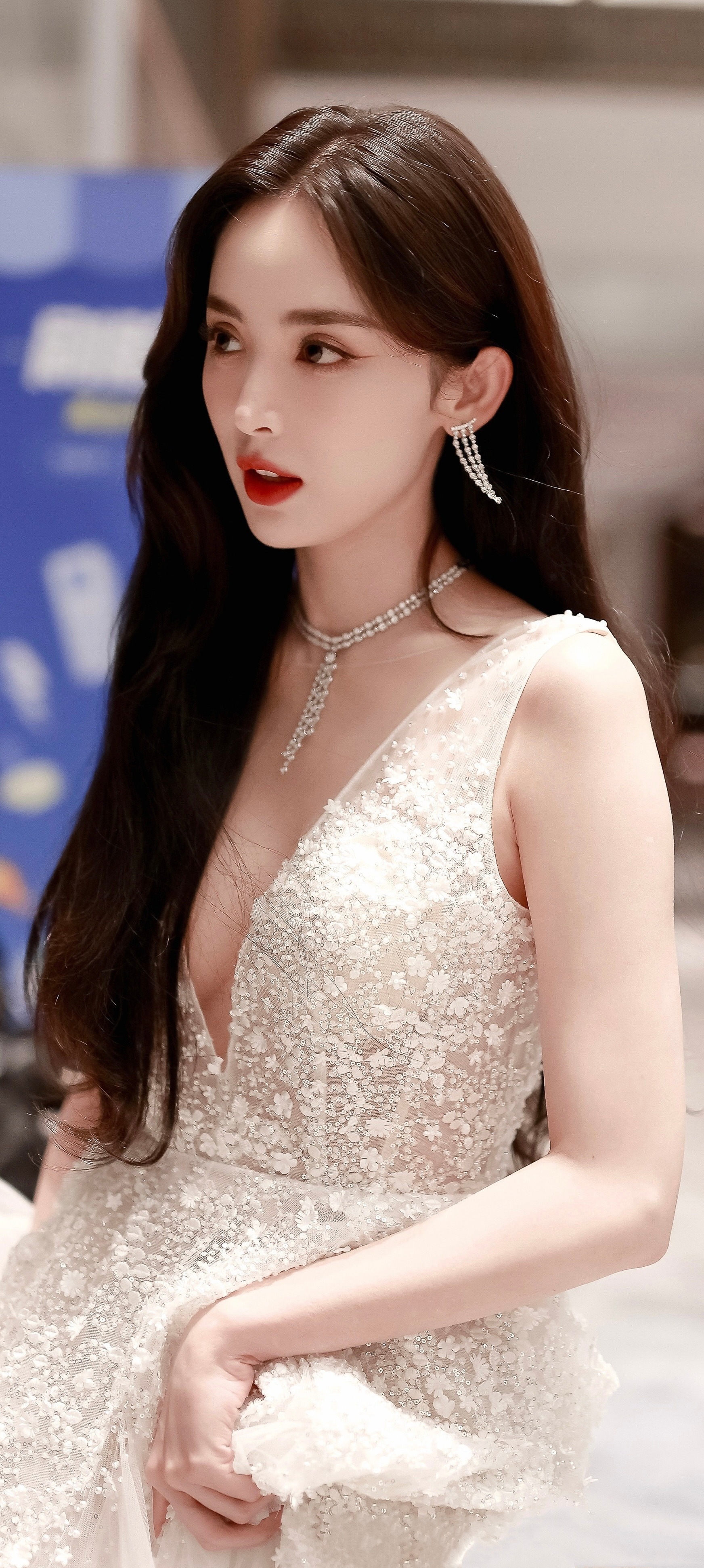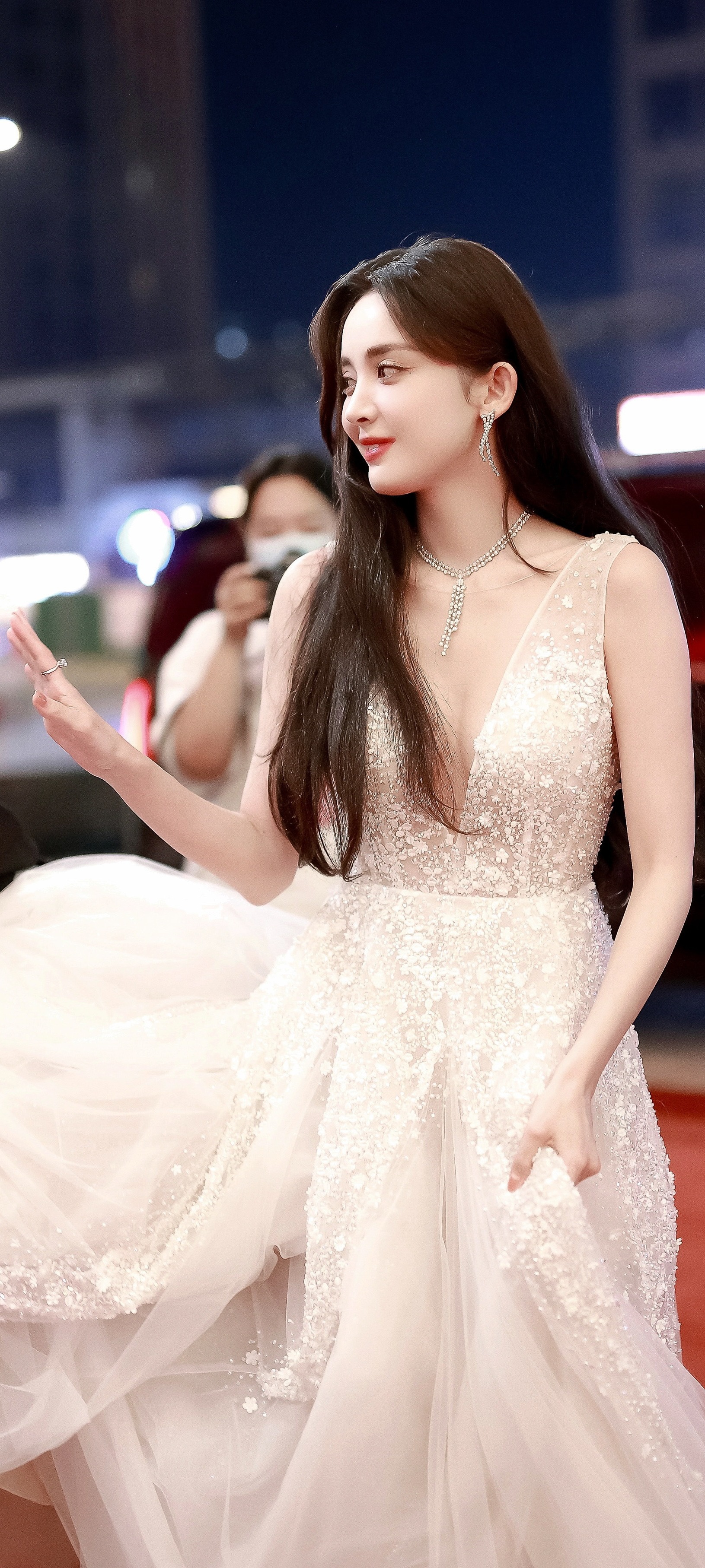 古力娜扎活动穿搭壁纸;温柔长发,搭配蕾丝白纱裙,仙气满满。娜扎