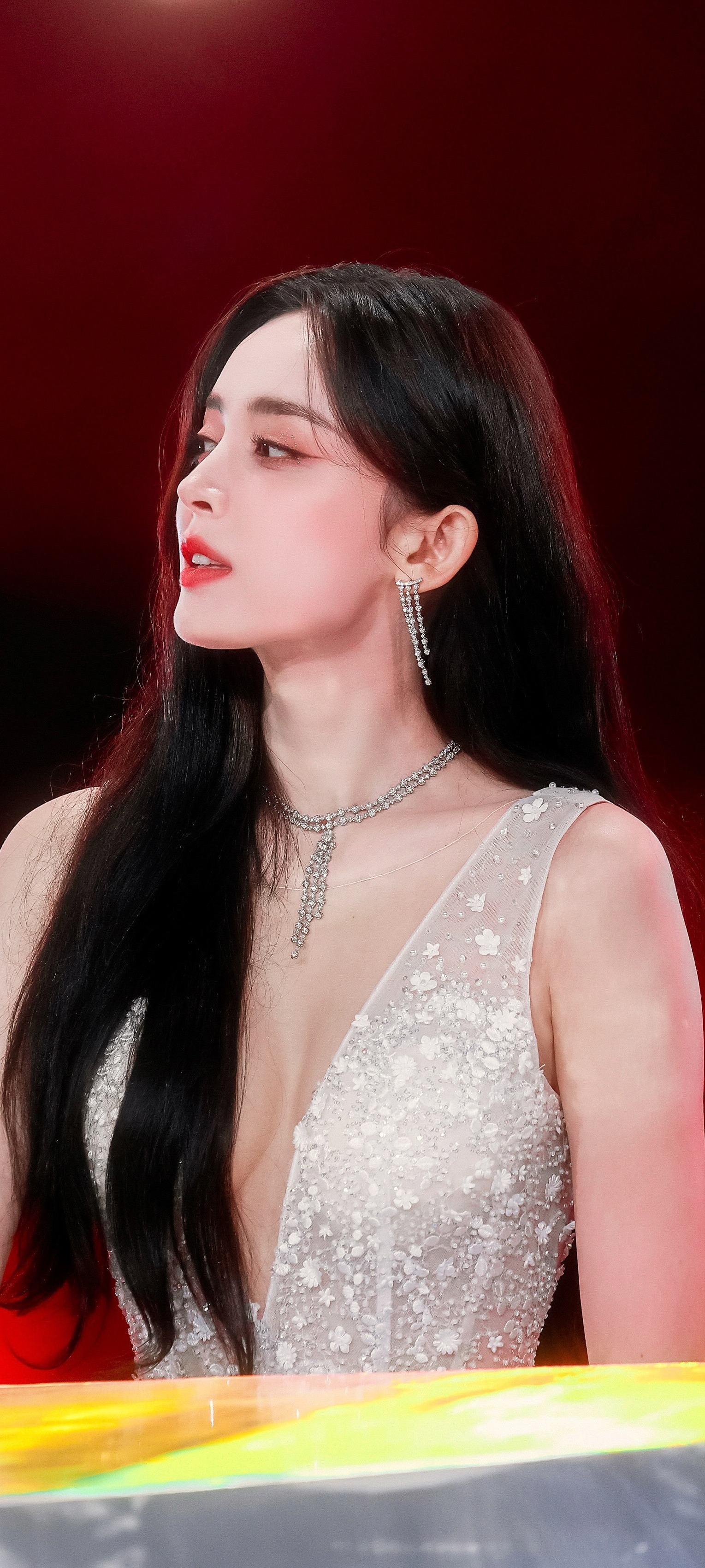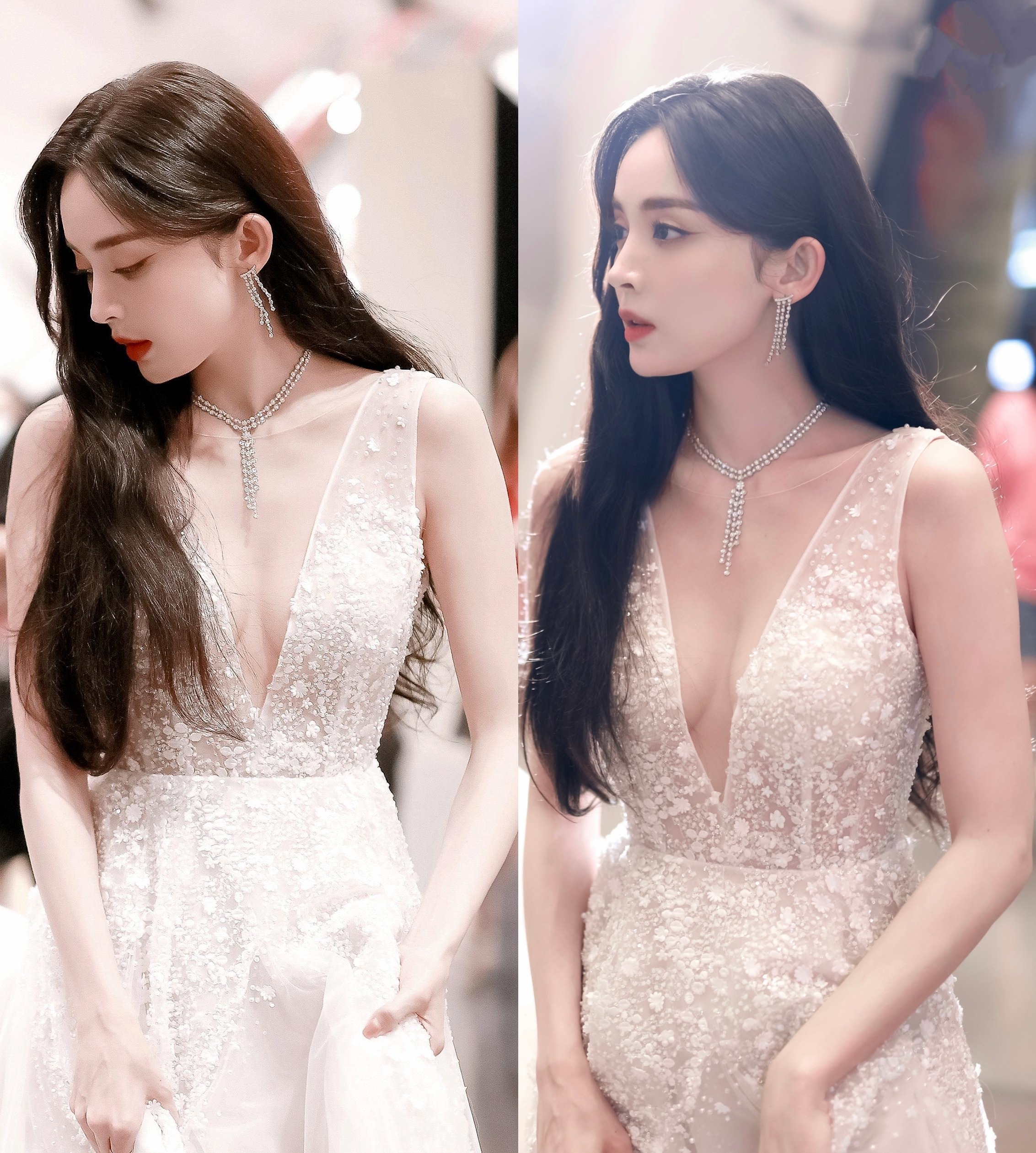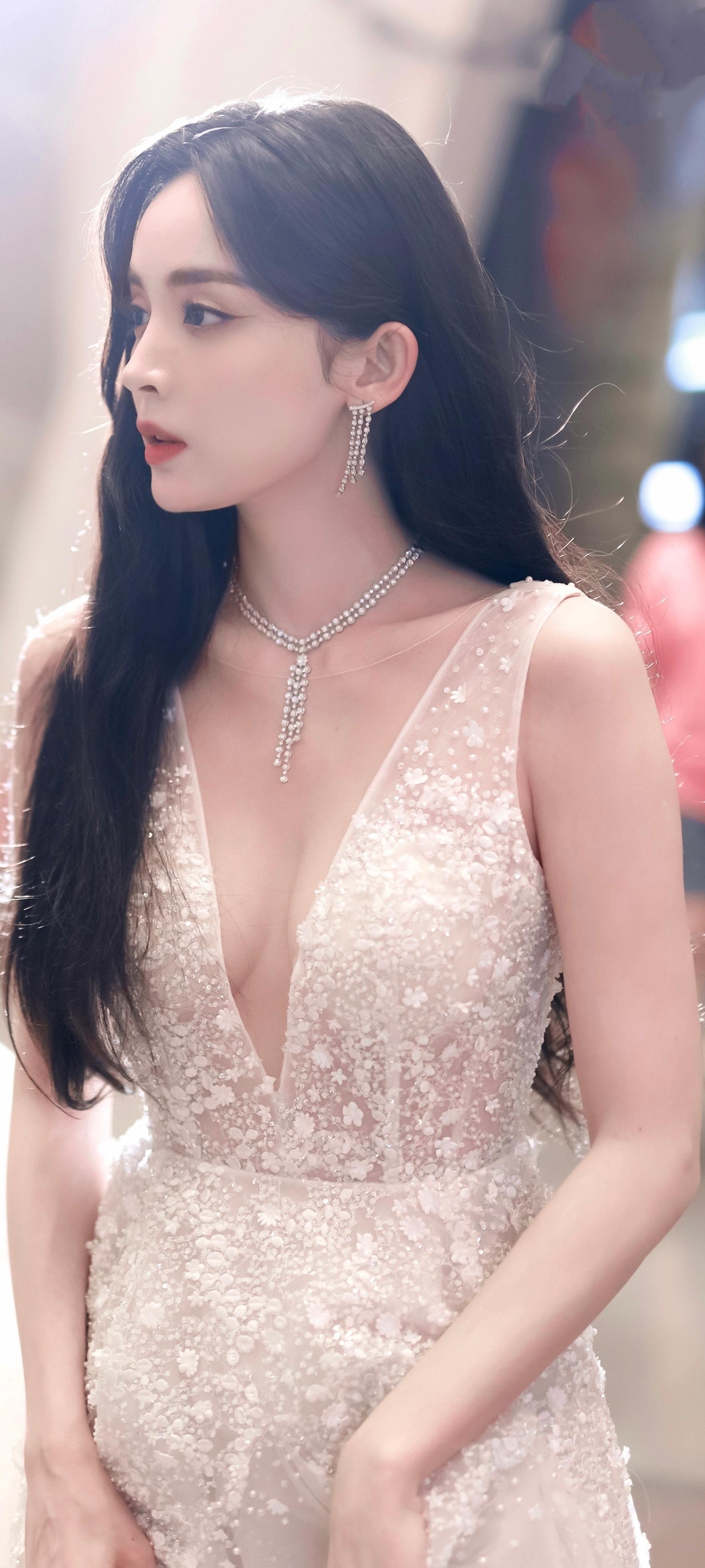 古力娜扎活动穿搭壁纸;温柔长发,搭配蕾丝白纱裙,仙气满满。娜扎