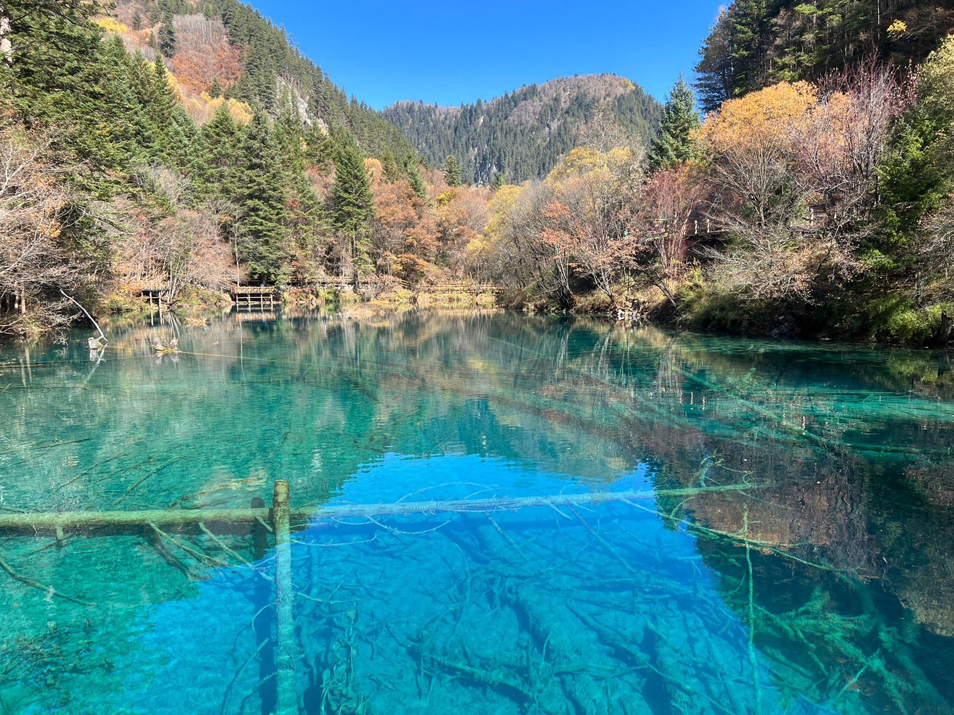 九寨沟,天堂景,人间仙境,世外桃源,四川美境,九寨沟是最美。久疑寨,沟里水。隐月松,触灵感。为有九寨沟。