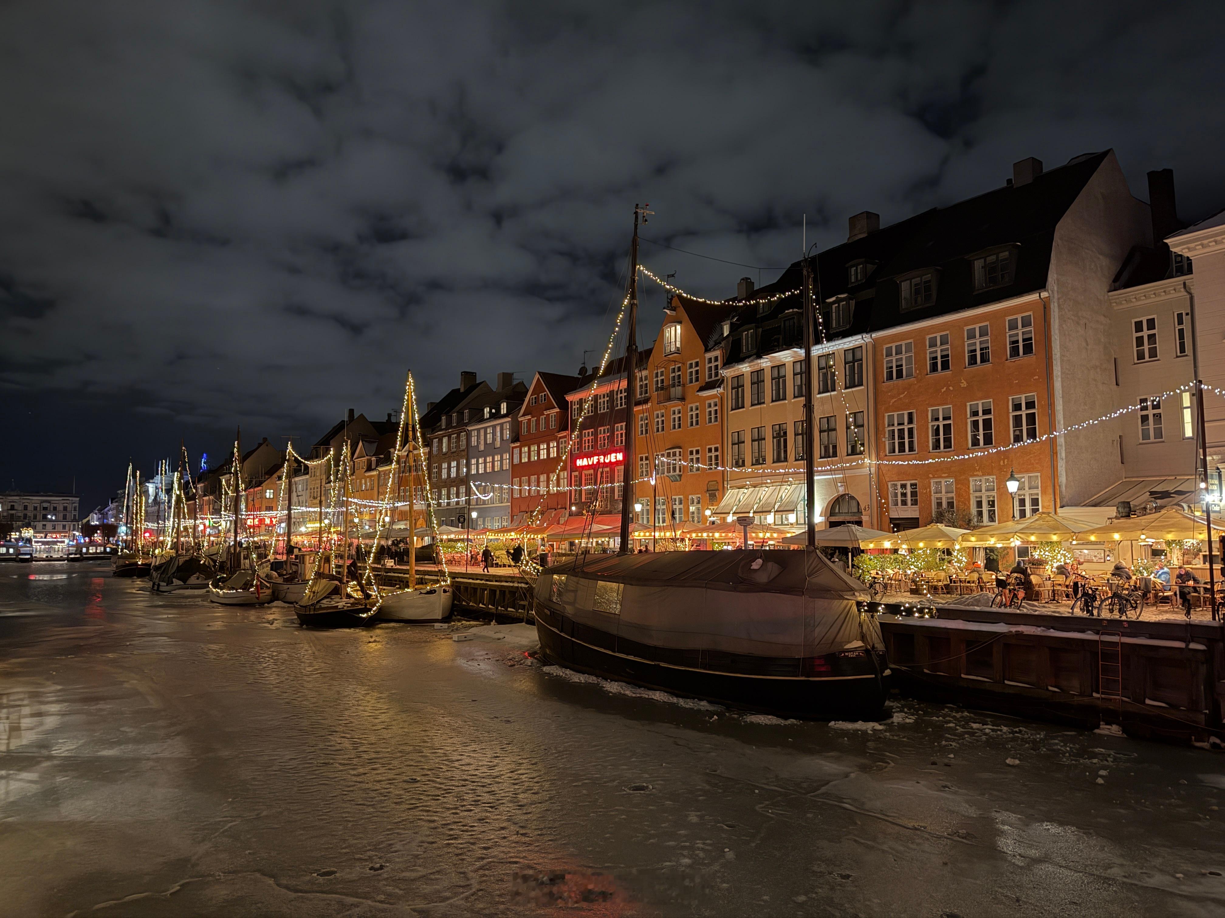 哥本哈根新港的冬夜,是另一种清冷又安静的浪漫。没有夏日喧嚣,彩色房子隐在夜色里,河面结着薄冰,船只静静冻在水中,像被时光暂时定格。暖黄路灯落在冰面,风里带着北欧独有的清冽,安静得只剩温柔。冷是真的冷,美也是真的美 丹麦