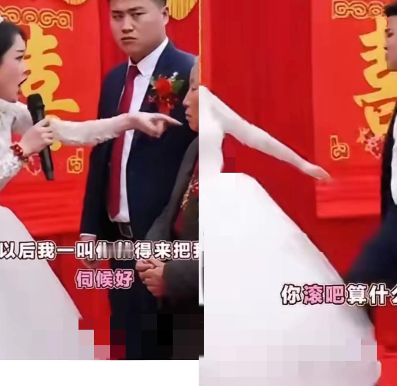新郎这一脚,踢醒了多少把婚姻当筹码的人! 婚礼本该是双向奔赴的起点,不是单方面立威的战场。 新娘还没过门就当众叫嚣,要婆婆尽心伺候、把她当祖宗供着,完全无视婆家掏空积蓄的付出,把喜庆日子变成了道德绑架现场。 新郎没有为了面子忍气吞声,而是当场果断止损。 这不是冲动,更是对家人的守护,对底线的坚守。 婚姻从来不是谁压榨谁,更不是进门就当太上皇,尊重和感恩才是长久的根基。 把长辈当保姆,把伴侣当软柿子,这样的人不配拥有幸福。 及时远离消耗型关系,比勉强凑活一辈子更清醒。 好的婚姻,是互相体谅,不是单向索取。你觉得新郎这一脚,值不值得点赞?