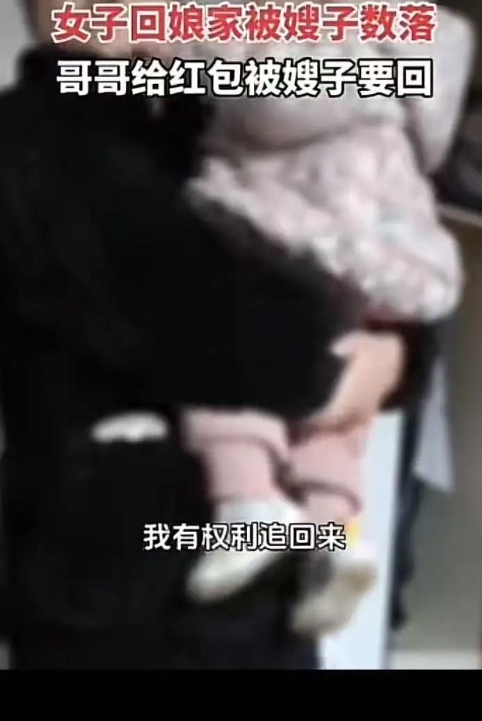 炸锅了!回娘家过年竟被嫂子当众数落,哥哥给的红包还被要回去! 26岁的小丽开开心心回娘家过年,本以为是团圆暖心,没想到全程被嫂子冷言数落,连亲哥偷偷塞给她的红包,转头就被嫂子追着要回去! 嫂子当场就说:“你把那钱退回来,这是我们夫妻共同财产,我有权利要回来!” 一句话,让小丽当场红了眼,默默收拾行李,提前结束了这场本该温馨的回娘家之旅。 网友看完直接破防: 嫁出去的女儿不是泼出去的水,回趟娘家还要看脸色,太让人心疼了! 亲哥连给妹妹个红包都做不了主,这年过得真寒心。 其实过年回家,求的不是那点钱,不是那顿饭,是一份体面、一份疼惜。连这点温暖都要斤斤计较,这娘家,回得真的太委屈了。 素材取于网络侵权删除