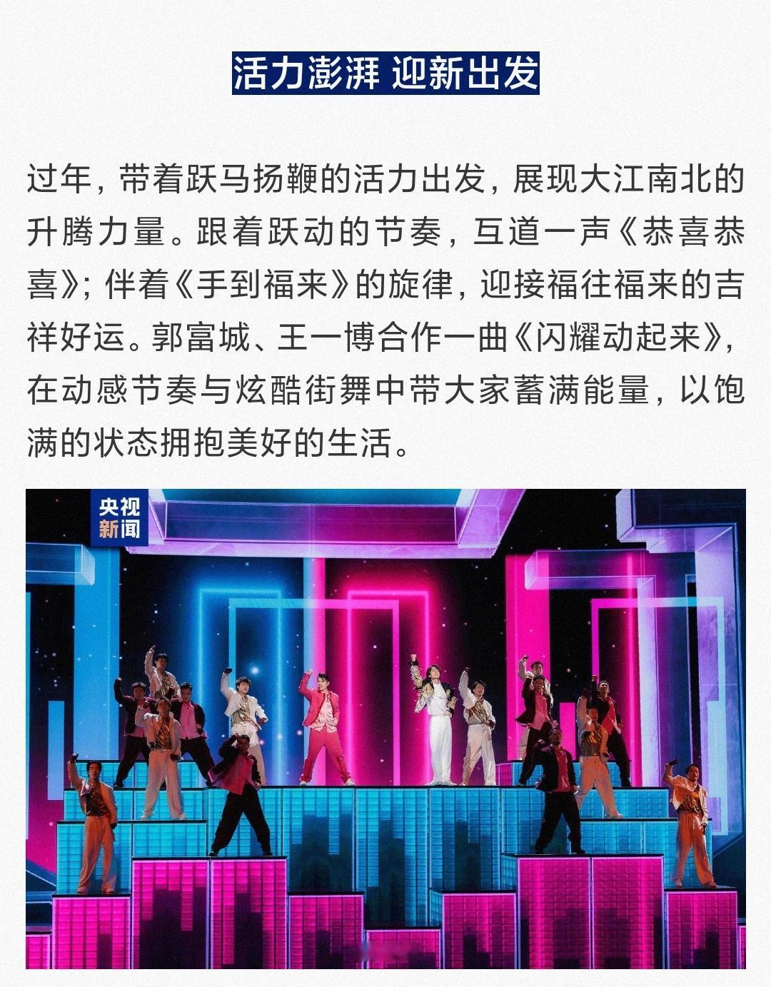 王一博2026年央视总台春晚!来啦! 王一博三登央视总台春晚,这次与郭富城合作一曲《闪耀动起来》👏🏻。 “炫酷街舞,王一博又要跳舞了!新老天王同台,唱跳无敌! 无比期待,春晚突然就从背景音变得非看不可了呢[灵光一闪]! 王一博 王一博2026年央视总台春晚