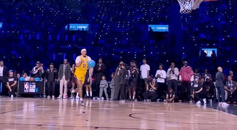 47.2分!海斯的招牌扣篮动作来了! 在第一记扣篮只有44.6分排名倒数第一之后,海斯在第二记扣篮拿出了自己的绝活—胯下扣篮,只见他将球高高抛向空中,随后加入进入篮下接球高高跃起完成胯下换手扣篮,整个动作行云流水一气呵成,得到了47.2的高分。 胯下扣篮是海斯的招牌,他曾在实战中多次使用。在一个1月27日对阵公牛队的比赛中,海斯抢断对手后上演快攻胯下扣篮,技惊全场,正是凭借这记扣篮被邀请参加扣篮大赛!