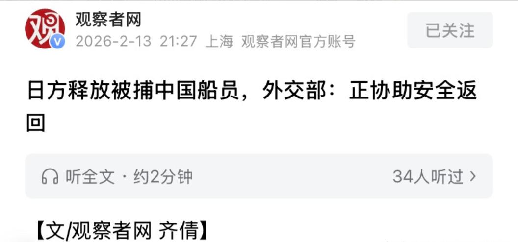 中国船长已获释,日本海保:警告日本渔民避免去钓鱼岛 就在刚刚根据日本共同社消息报道,2月13晚间,日本水产厅宣布,在支付了保证金和书面担保后,被扣押的47岁中国船长已被释放。目前这名船长正在中方驻日本大使馆的帮助下返回中国。 对于这件事情,我们是怎么看的?事发之后,无论是官木原稔还是日本农林水产大臣铃木宪和无一例外,态度都非常的强硬,称在竭尽全力查清该事件的同时,将遏制外国渔船在日本专属经济海域,进行非法捕鱼活动,以此来保证日本的合法权利。 这话听着就可笑,谁给他们的胆子,在咱们中国的地盘上指手画脚?他们口中的“合法权利”,根本就是建立在非法侵占他人领土的基础上,完全站不住脚。 中国外交部早就明确表态,坚决维护中国渔民的合法权益,希望日方遵守《中日渔业协定》公正执法,可日本偏偏充耳不闻,非要搞这种挑衅行为,分明就是故意制造事端,破坏中日之间的正常关系。   更有意思的是,日本海保一边对中国强硬,一边却警告自己的渔民别去钓鱼岛海域。这操作本身就自相矛盾,这不等于默认钓鱼岛不是他们的吗? 要是真像他们说的那样“拥有主权”,为什么不敢让自己的渔民去作业?说白了就是心虚,知道自己理亏,怕渔民去了之后引发更大的冲突,到时候下不来台。 他们心里清楚,中国在钓鱼岛问题上的立场绝不会退让,中国海警一直在钓鱼岛海域开展维权执法活动,就是要守护咱们的领土和海洋权益,日本那些小伎俩根本起不了作用。   日本这种又想挑衅又怕闹大的心态,暴露得明明白白。他们扣押中国船长,无非就是想试探中国的底线,想通过这种方式宣示所谓的“存在感”,但他们忘了,现在的中国早就不是以前任人拿捏的样子了。 这次船长能顺利获释,离不开中方驻日大使馆的积极协助,更离不开国家的强大后盾。这些年,只要中国公民在海外遇到危险、受到不公正对待,国家总会第一时间站出来交涉,全力保障同胞的安全和权益,这就是咱们的底气所在。   再想想,日本这些年在钓鱼岛问题上就没断过小动作,一会儿弄些所谓的“历史文件”试图证明自己的非法主张,一会儿又派巡逻船在周边海域骚扰咱们的渔船,可每次都被中方有力回击。外交部一次次严正抗议,海警船常态化维权执法,让日本的企图一次次落空。 他们那些所谓的“证据”,在历史和法理面前不堪一击,国际社会都看得清清楚楚,钓鱼岛的主权归属中国,有充分的历史和法理依据,不是日本想抢就能抢的。   日本官员的强硬态度,说白了就是演给国内看的,想煽动民族情绪,转移国内的矛盾。可这种做法根本行不通,反而会让中日关系变得更加紧张。 中日一衣带水,本来可以在很多领域好好合作,但日本偏偏要在领土问题上不断挑衅,破坏两国关系的大局,最终损害的还是他们自己的利益。 就像这次,扣押中国船长不仅没占到任何便宜,反而引发了中国民众的强烈不满,也让国际社会看清了他们的霸权本质,真是得不偿失。   咱们的渔民祖祖辈辈都在钓鱼岛海域捕鱼,这是传承了几百年的传统渔区,钓鱼岛就是他们赖以生存的家园。日本扣押船长、干扰渔民作业,不仅侵犯了中国的领土主权,还断了渔民的生计,这种做法既不合法,也不人道。 好在船长最终平安获释,这再次证明,任何试图侵犯中国领土主权、损害中国公民权益的行为,都不会得逞,中国政府和中国人民有决心、有能力捍卫自己的合法权益。   现在日本海保警告自己的渔民别去钓鱼岛,这其实是个很明确的信号,他们知道自己在钓鱼岛问题上理亏,不敢真的跟中国硬碰硬。但咱们也不能掉以轻心,日本的野心从来没有消失,他们随时可能再搞出一些小动作。 所以,中国海警必须继续保持在钓鱼岛海域的维权执法力度,常态化开展巡逻管控,让日本知道,中国捍卫领土主权的决心坚定不移,任何挑衅行为都将受到坚决回击。   说到底,这次船长获释是中方努力的结果,但日本的非法扣押行为已经给中日关系造成了负面影响。 日本要是真的想改善中日关系,就应该正视历史事实,尊重中国的领土主权,停止在钓鱼岛问题上的一切挑衅行为,而不是一边搞小动作,一边还装出强硬的样子。 中国始终愿意通过对话协商解决分歧,但前提是日本必须拿出诚意,放弃那些不切实际的非法主张,否则中日关系很难真正走向缓和。   作为中国人,我们每个人都应该清楚,钓鱼岛是中国不可分割的一部分,这是底线问题,绝不能有任何退让。 不管日本今后还会耍什么花招,我们都要坚定地站在国家一边,支持国家的维权行动。只有国家强大了,我们的领土主权才能得到更好的保护,我们的同胞在海外才能不受欺负。   最后,希望日本能吸取教训,停止在钓鱼岛问题上的挑衅,回到通过对话协商解决分歧的轨道上来。 如果继续执迷不悟,只会让中日关系越走越远,最终承担所有不良后果。而我们中国,会一如既往地坚定捍卫国家的领土主权和海洋权益,任何国家、任何势力都别想撼动我们的决心。