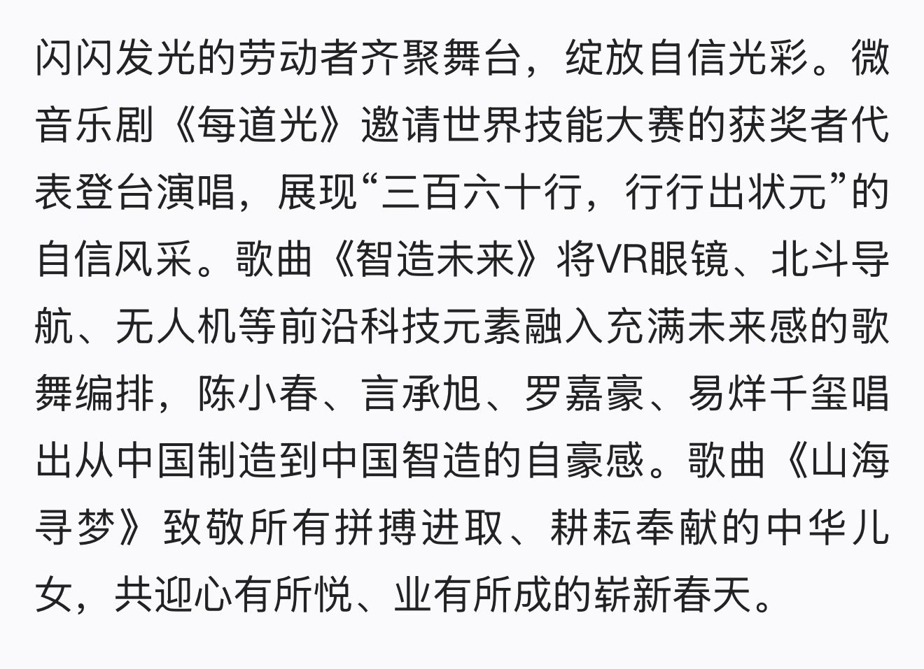 马年春晚歌唱类部分节目:
