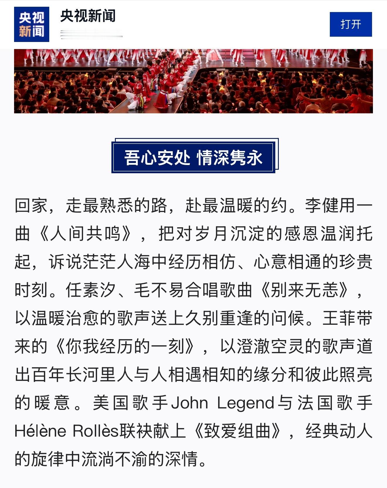 马年春晚部分节目单曝光 央视官宣王菲春晚新歌