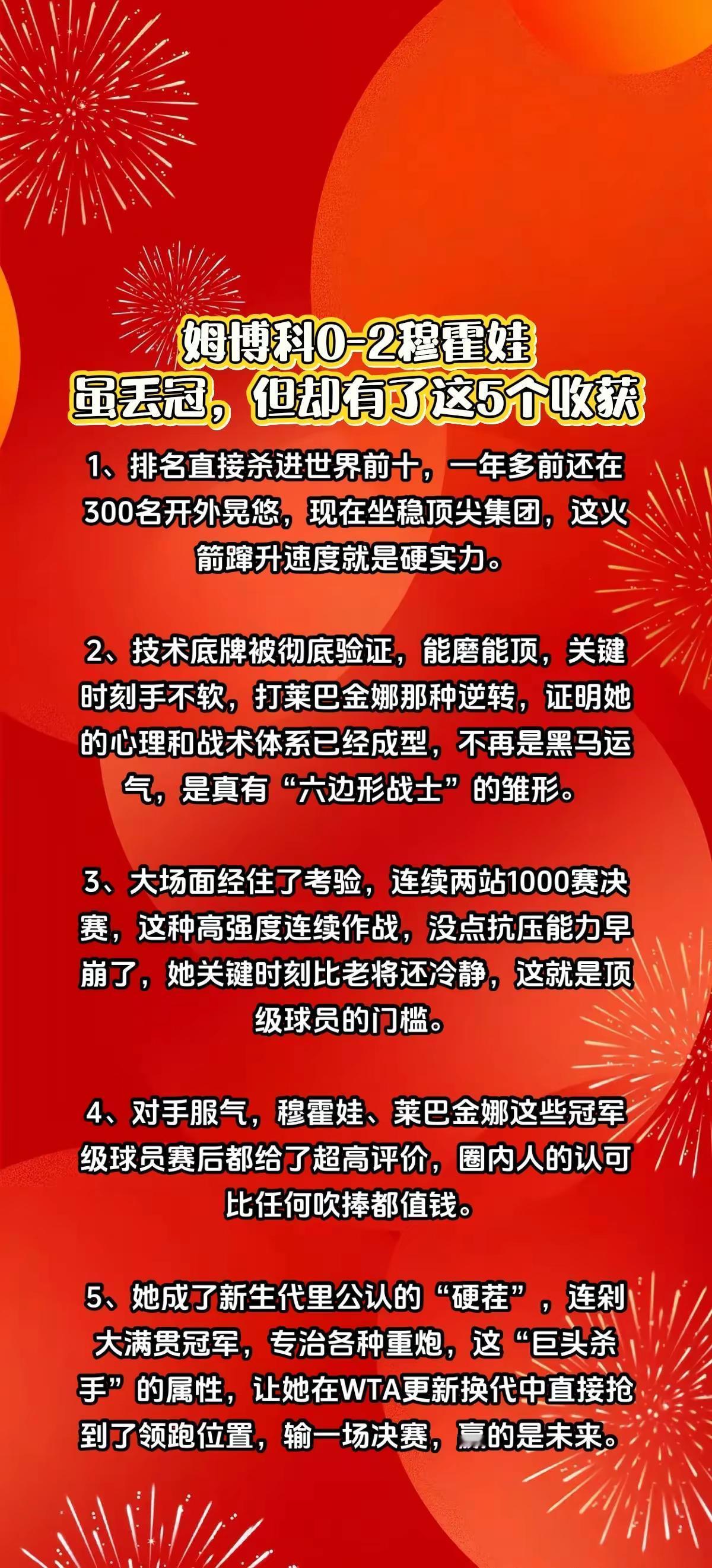 姆博科0-2穆霍娃丢冠,却来带这5大收获。精选