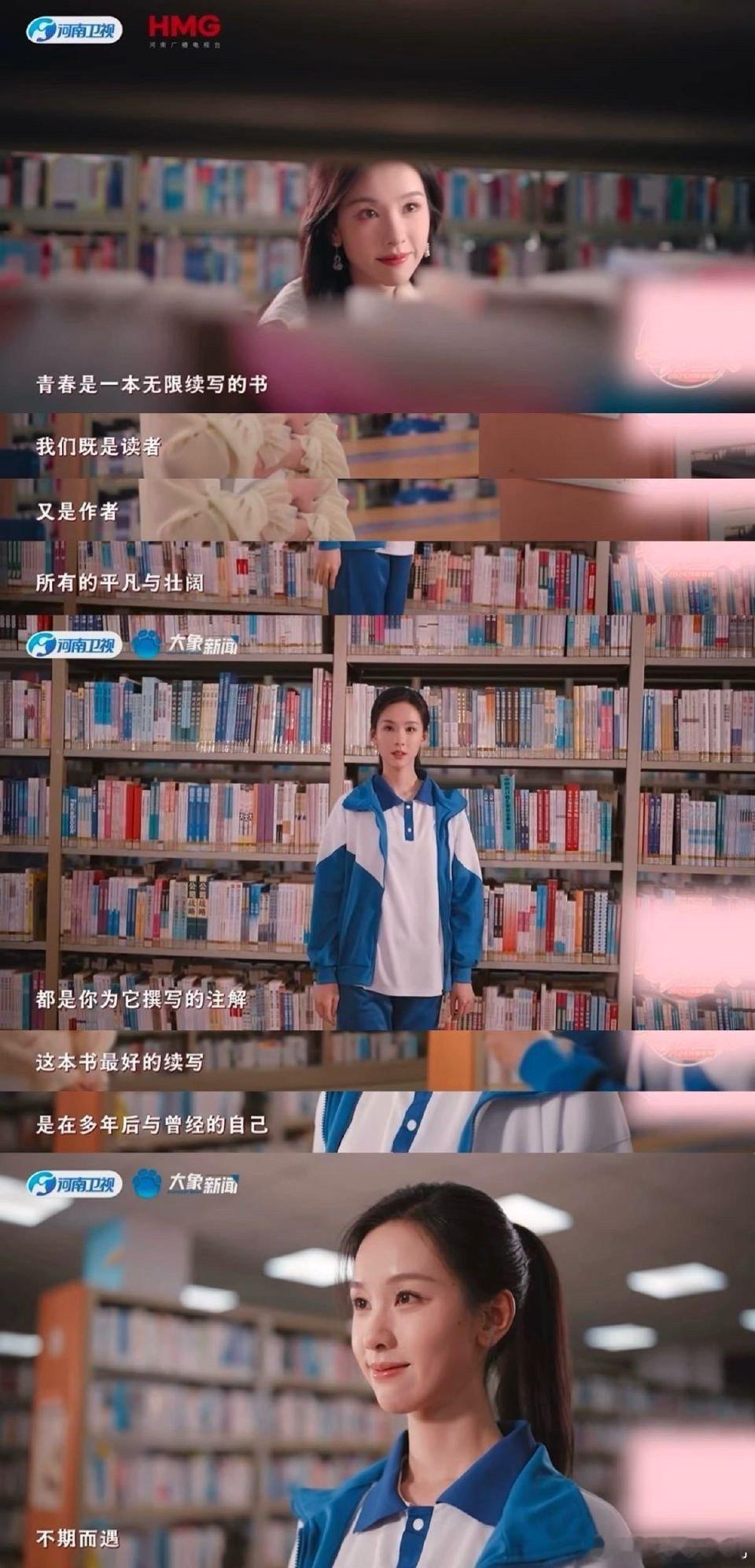 河南春晚有两个陈都灵 还以为是特效,结果真的是两个陈都灵同框!校园学姐和国风佳人在图书馆相遇,递书的瞬间仿佛跨时空对话。这画面太美好了~