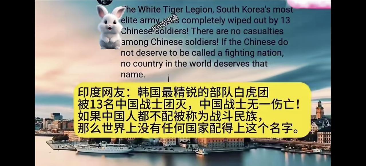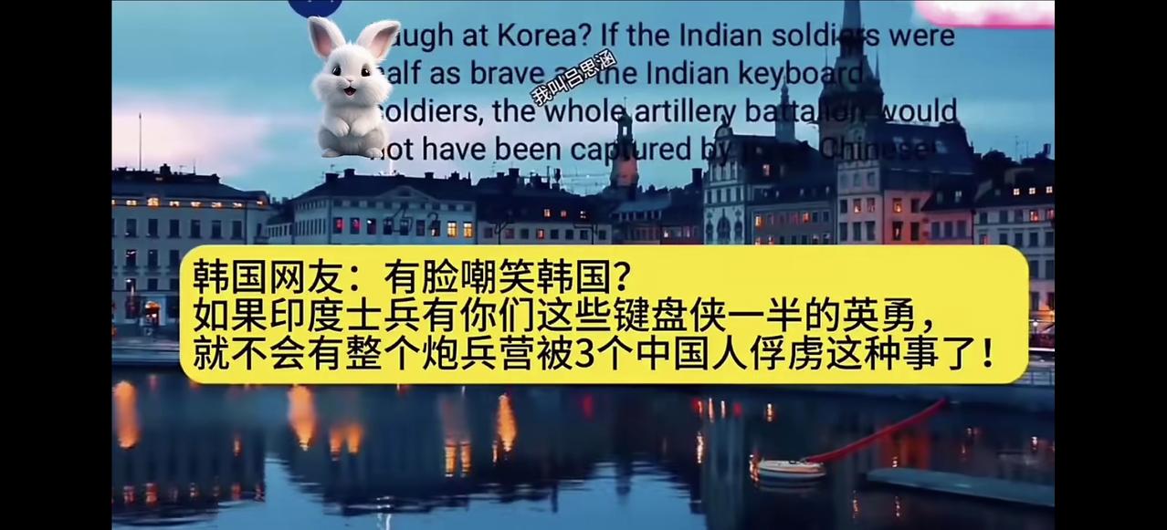 早上看到一个视频,差点笑疯了。 韩国人和印度人果然是他们口中所称的“世界中心”,若论自大,双方有得一拼,若说自吹自擂,双方同样不分伯仲,不过有一点双方该如何自证:“究竟这个世界上,韩国和印度谁才是中心?”总不会中心有两个吧? 感恩父辈们的英勇善战,凛然无畏,作为志愿军后代倍感自豪,若不是他们的不畏牺牲打出来军威和国威,何来今日之“繁花似锦觅安宁?”