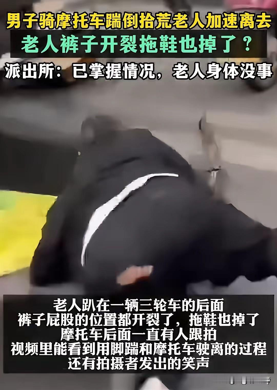 “天生的坏种!”2月12日,广东茂名高州市石鼓镇一男子骑着摩托车,把一名毫无防备的拾荒老人踹倒在地! 老人扛着一个黄色的袋子在前面走着,一辆粤k牌照的摩托车行驶到老人跟前时,一脚向老人踹去,将老人踹倒后加速离去! 光天化日之下无故伤害弱势群体,这样的行为总能让人看得心头一紧。2月12日,广东茂名高州市石鼓镇一处临街路段,发生了一段让人揪心的街头一幕。 一位头发花白的拾荒老人,独自沿着路边缓慢行走,老人衣着朴素陈旧,脚上穿着简易的塑料拖鞋,肩上稳稳扛着一个装满回收物品的黄色袋子,手里还握着一根用于捡拾废品的短棍,身形略显佝偻,步履迟缓而平稳。 老人全程紧贴路边行走,没有占用机动车道,没有与任何路人发生肢体接触或言语冲突,只是安静地赶路,对即将降临的意外毫无防备。 一辆悬挂粤K本地牌照的普通摩托车,从老人后方道路缓缓驶来,车上共有三名驾乘人员,车辆没有按照正常交通规则绕行或超车,反而刻意压低车速,一点点向老人身边贴近,整个过程没有鸣笛示意,没有发出任何提醒,老人始终没有察觉身后的异常。 当摩托车行驶到与老人身体平行的位置时,驾驶车辆的男子突然做出危险举动,猛地伸出右脚,朝着老人的腰背部用力踹去, 这一脚力道十足,老人在完全没有防备的情况下,身体瞬间失去平衡,整个人向前重重摔倒在坚硬的水泥路面上,肩上的黄色袋子被甩落在一旁,脚上的拖鞋也在摔倒过程中脱落,老人趴在地上一时无法自主起身,场面显得格外无助。 实施踹人行为后,摩托车上的三名人员没有丝毫停留,也没有俯身查看老人是否受伤、是否需要帮助,反而立刻加大油门,驾驶车辆快速驶离事发路段,全程动作仓促,态度冷漠,只留下老人独自倒在路边。 这一全过程被路边公共监控清晰记录,画面中老人的狼狈与无助,和施暴者的轻率与冷漠形成强烈对比,视频被传到网络平台后,迅速引发大量网友关注,大家对这种无故欺凌弱势群体的行为表示难以接受。 当地警方在接到群众报警与网络线索后,第一时间启动调查流程,通过监控轨迹追踪、车牌信息核查、周边群众走访等方式,快速锁定涉案的三名人员,在短时间内将三人全部查获并传唤到案接受调查。 事发后,相关工作人员第一时间找到摔倒的老人,将老人送往医院进行全面身体检查,经专业检查确认,老人身体并无严重损伤,只是受到明显惊吓。 工作人员还上门对老人进行慰问,为老人送上生活物品,安抚老人的情绪,帮助老人恢复正常生活状态。 公安机关依据相关法律法规,对这起街头无故伤害他人的案件作出严肃处理,其中实施踹人行为的主要涉案人员被依法予以刑事拘留,另外两名同行涉案人员被依法处以行政处罚,肇事摩托车也被依法暂扣,相关违法处置与教育整改工作同步推进。 整个事件没有任何矛盾铺垫,没有口角纠纷,完全是一场突如其来的恶意施暴,平静的街头突发的恶劣行为,也让更多人开始关注街头公共秩序、弱势群体安全保护以及未成年人行为引导等现实问题。 对此,你们有什么看法,欢迎评论留言~