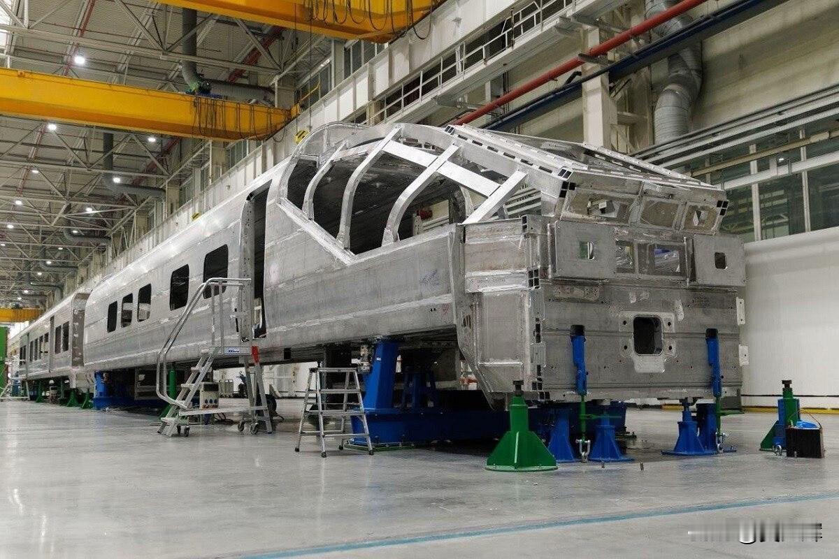 【这就是俄罗斯高铁生产速度】 乌拉尔机车车辆厂已完成高速列车“白矛隼”(Белый кречет)首节动力车厢与第二节非动力车厢的车体焊接工作。 ЭВС-360 型“白矛隼”列车设计时速 400 公里,在莫斯科—圣彼得堡线路上的运营时速为 360 公里。 按照计划,截至2030年底,乌拉尔机车车辆厂需为俄罗斯高铁总共生产 43 列该型列车。