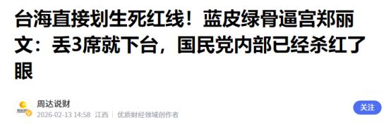 郑丽文要被换掉?根据台媒披露,国民党本土派正在酝酿在2026年底,换掉郑丽文,推出一位与2028参选人一致的国民党主席,并且这位党主席并不姓卢! 首先得说清楚,郑丽文能不能继续当国民党主席,根本不是谁想换就能换的,关键看2026年的县市长选举结果。她自己心里也明白,这是一场生死战。 2025年10月她当选党主席的时候,支持率一度冲到44.5%,可才过了几个月,不信任率就涨到了53.5%,自家支持者里都有不少人动摇了,这跟县市长选举的提名协调不顺有很大关系。 现在国民党要在22个县市推县市长候选人,这事特别难办。有些地方已经定了人选,比如高雄让柯志恩出战,台南是谢龙介,还有台北的蒋万安、基隆的谢国梁这些现任要连任。 但新北、台中这两个大县市,人口多、影响大,协调起来特别费劲,侯友宜、卢秀燕这些党内大咖都不好安排。 还有新竹县、彰化县这些地方,要么是参选人意愿有分歧,要么是派系内斗,候选人迟迟定不下来。这些问题都让外界觉得郑丽文整合党内的能力不够,也给了本土派想换人的理由。 再说说国民党本土派的想法,他们想换郑丽文,本质是为了2028年的地区领导人选举。之前就有声音说,2026年县市长选举是2028年的前哨战,必须打好基础。现在国民党里有好几个潜在的2028参选人,比如卢秀燕、韩国瑜、蒋万安,还有郑丽文自己。 本土派觉得,得找一个和最终2028参选人立场完全一致的党主席,才能统一步调,不然党内思想不统一,到时候又会像以前一样分散选票。 而且他们明确说新主席不姓卢,这也有原因。 卢秀燕虽然之前民调不错,但她的立场一直让人看不懂。她作为国民党的台中市长,却去参加赖清德的就职典礼,郑丽文的党主席就职典礼她反而缺席。 还主动去民进党党部座谈,帮民进党站台说话,这跟国民党坚持的“九二共识”、反“台独”路线不合,深蓝的民众都不满意,她的民调也已经开始下滑了,所以本土派不想再围绕她安排党主席人选。 这里面绝对少不了民进党的影子,只要到了选举年,民进党就喜欢给国民党制造内乱。最近民进党就搞了个小动作,台北地检署起诉了7个国民党的民意代表,说他们在“立法院”的冲突中犯了错,可同样参与冲突的民进党人却没几个被起诉。 明眼人都看出来,这就是“选不赢,就让你选不了”,想通过司法手段把国民党的得力干将拉下马,让他们没法参选,同时制造国民党内部的混乱。 其实国民党现在的处境挺难的,一方面要应对民进党的各种算计,另一方面党内派系多、协调难。 郑丽文要是能带领国民党在2026年县市长选举中拿到好成绩,比如保住4个以上“直辖市”的执政权,甚至拿下高雄、台南这些原本的民进党地盘,那谁也动不了她,甚至她自己都有可能成为2028年的参选人。 可要是选得不好,尤其是六大“直辖市”的执政数量减少,那她大概率只能辞职下台,本土派换人的想法也就成真了。还有个情况要提,国民党和民众党现在在搞“蓝白合”,2026年县市长选举可能会在新竹市、宜兰县这些地方礼让民众党候选人。 这种合作能不能成功,也会影响选举结果。如果合作顺利,国民党能集中力量在关键选区获胜,对郑丽文的连任是好事;可要是合作出了问题,选票分散,选举失利,那党内对她的不满会更强烈。 说到底,郑丽文会不会被换掉,不是现在就能定的,2026年县市长选举的结果才是最终答案。民进党肯定还会继续搅局,国民党内部的分歧也不会轻易消失,但不管怎么说,选举最终看的是民众的意愿。 国民党要是能团结起来,坚持两岸和平、反对“台独”的路线,把民生问题解决好,才能赢得民众支持,到时候不管是谁当主席,才能有底气和民进党竞争2028年的大选。